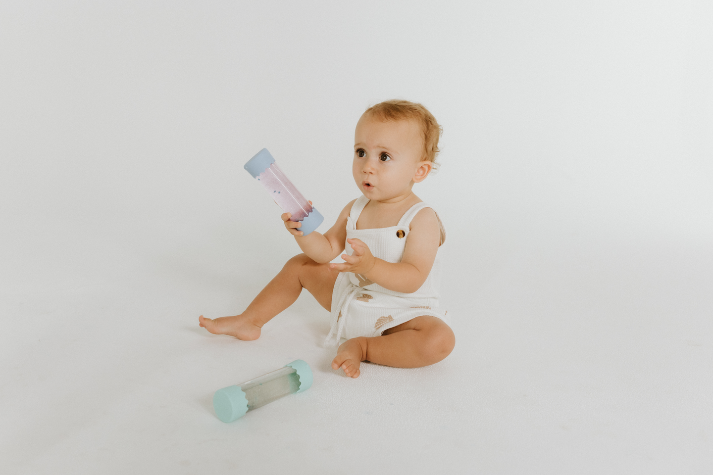 Lumoudu Taikapullosta! Kääntele ja pyöritä pulloa ja lumoudu kimalteiden taianomaisesta tanssista! Aistipullo saa vilkkaan mielen rauhoittumaan. Se hurmaa niin vauvan kuin vähän vanhemmankin lapsen, jopa aikuisen. Taikapullo on erinomainen tuote vauvan masuhetkiin: se kannustaa lasta viettämään aikaa vatsallaan. Lapsi voi ihastella pullossa hitaasti liikkuvia koristehileitä, pyöritellä sitä lattialla ja tunnustella sen pintaa. Pullon molemmissa päissä on silikoniset hatut, joiden erilaiset kosketuspinnat stimuloivat tuntoaistia. Kauniin ja mukavan tuntuisen taikapullon pariin on helppo pysähtyä.