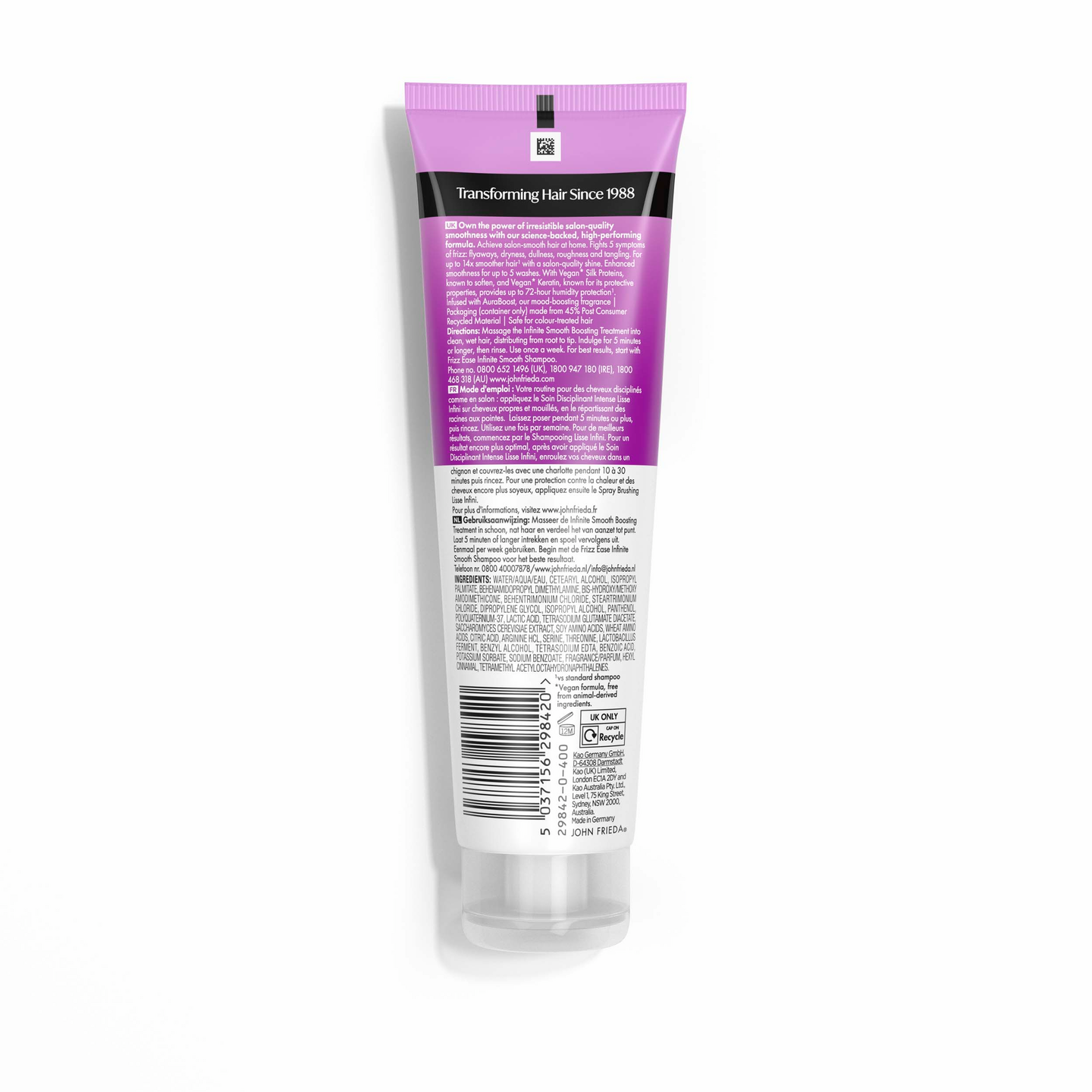 Hanki vastustamaton kampaamo laatuinen sileystieteellisesti todistetulla, tehokkaalla koostumuksellamme.Saavuta kampaamo laatuinen sileys kotona. Torjuu viisipörröisyyden oiretta: sähköisyys, kuivuus, sameus, karheusja takkuuntuminen. Antaa jopa 14 kertaa sileämmät hiukset¹salonkimaista kiiltoa varten. Lisääntynyt sileys kestääjopa 5 pesua. Sisältää vegaanisia* silkki-proteiineja,joiden tiedetään pehmentävän, ja vegaanista* keratiinia,jonka tiedetään suojaavan. Tarjoaa jopa 72 tunninkosteudensuojan¹. Rikastettu AuraBoostilla, tuoksu jokaherättää aistit. Turvallinen värjätyille hiuksille.