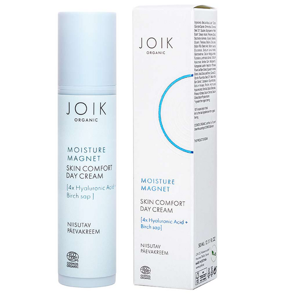 JOIK Moisture Magnet Skin Comfort Päivävoide kosteuttaa ihoa tehokkaasti ja tekee siitä kimmoisamman. Kasvovoide suojaa ihoa ulkoisilta haittatekijöiltä ja auttaa vähentämään ihon punoitusta. Avainraaka-aineet: Hyaluronihappo neljässä eri molekyylikoossa Virolainen koivunmahla ja punaleväuute Iholle identtiset aminohapot ja hiilihydraatti kompleksi Hyödyt iholle: Syväkosteuttaa Parantaa ihon elastisuutta Suojaa ihoa ulkoisilta haittatekijöiltä Vähentää ihon herkkyyttä ja punoitusta
