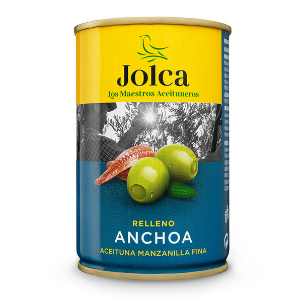 Jolcan anjovistahnalla täytetyt vihreät kivettömät Manzanilla-oliivit ovat herkullinen naposteltava. Käytä salaatteihin ja ruoanlaittoon tai nauti sellaisenaan.