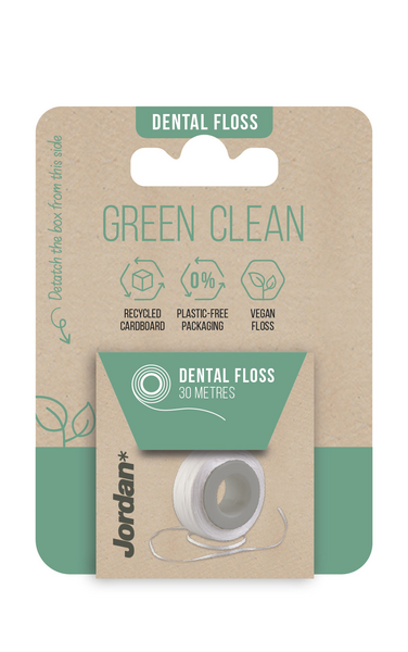 Jordan Green Clean Floss -hammaslanka liukuu helposti hammasväleissä rispaantumatta. Sopii vegaaneille. Tuote on pakattu näyttävään pahvipakkaukseen.