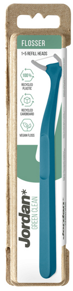 Jordan Green Clean Flosser -hammaslankain on pakattu näyttävään pahvipakkaukseen, varsi on valmistettu 100 % kierrätetystä muovista. Lanka sopii vegaaneille. Tuote sisältää 5 vaihtopäätä. 3 eri väriä. Valitettavasti väriä ei voi valita verkkokaupasta tilattaessa, toimitus varastotilanteen mukaan.