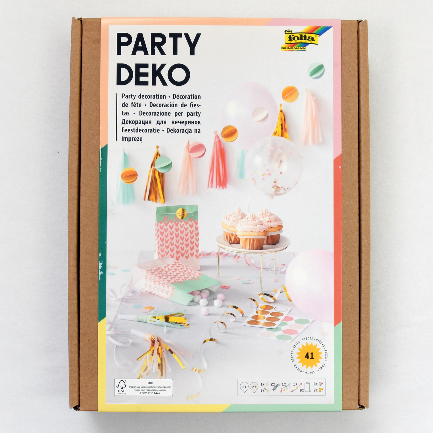 Koristele juhlasi tyylillä Party Deko Sydämet -setillä! Tämä 41-osainen paketti sisältää kaiken tarvittavan: 6 ilmapalloa värilajitelmassa, 2 konfetti-ilmapalloa, 6 juhlatorvea, 1,5 m konfettiviirin, 3 m tasselnauhan, 2 serpentiiniä, 20 g konfettia, 16 tarraa ja 6 paperipussia. Täydellinen valinta vaalean vihreään ja pinkkiin värimaailmaan sydänkuosilla.
