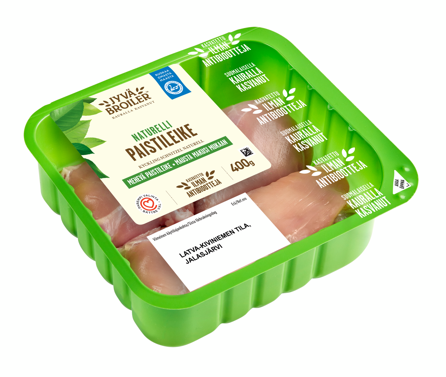Jyväbroiler broilerin paistileike naturelli on erinomainen vaihtoehto heille, jotka haluavat maustaa ruokansa itse. Mehevän paistileikkeen voi kypsentää helposti pannulla, uunissa tai grillissä. Ota paistileikkeet huoneenlämpöön ½ tuntia ennen kypsentämistä. Grillaa tai paista kuumalla pannulla tilkassa öljyä yhteensä n. 10 min välillä kääntäen, kunnes sisälämpötila on 75°C. Antibioottivapaa-merkintä pakkauksessa kertoo, että eläimet eivät ole tarvinneet ainuttakaan antibioottikuuria elämänsä aikana.