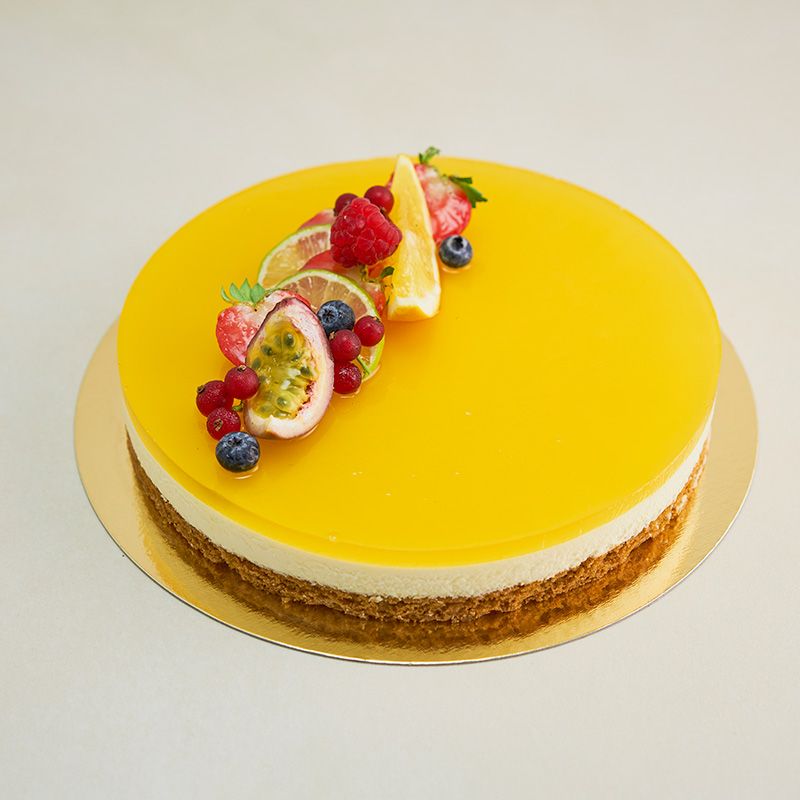 ENNAKKOTILATTAVA KAKKU Tilattava vähintään 3 arkipäivää ennen toimitusta. Kirjoitathan tilauksen lisätietoihin tilattavan kakun koon. Rapealla murupohjalla tuorejuustomousse, Pinnalla raikas passionhyytelö, koristeena tuoreita marjoja ja hedelmiä. Saatavissa koot: 5hlö 28,50€ 10 hlö 45,00€