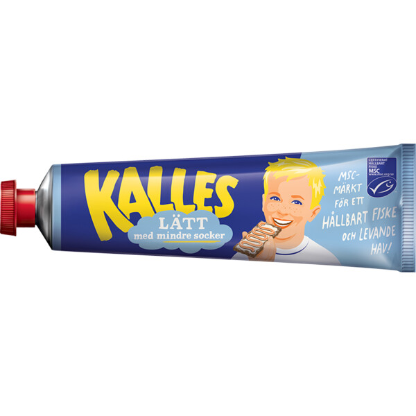 Trivs du bäst uppe bland molnen? Eller i det blå? Då har du hamnat helt rätt! Kalles Lätt är osötast i kaviarfamiljen och innehåller 50% mindre socker och är helt enkelt lätt att tycka om. Bon appétit!\n\nFångstområde: Torskrom (Gadus morhua) – Norska havet och Barents hav\n\nFörvaras vid högst +8°C