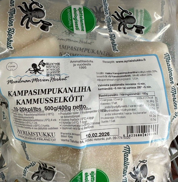 Äyriäistukku Kampasimpukanliha 500g/400g