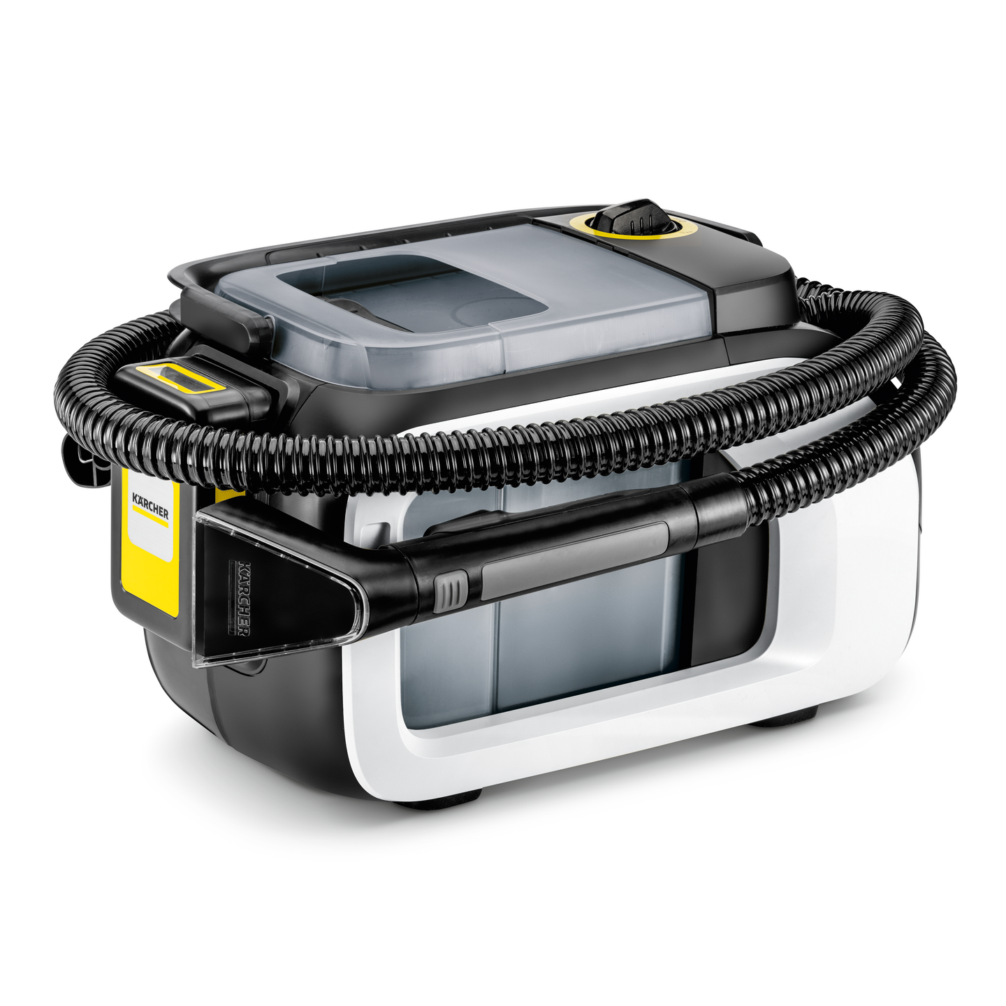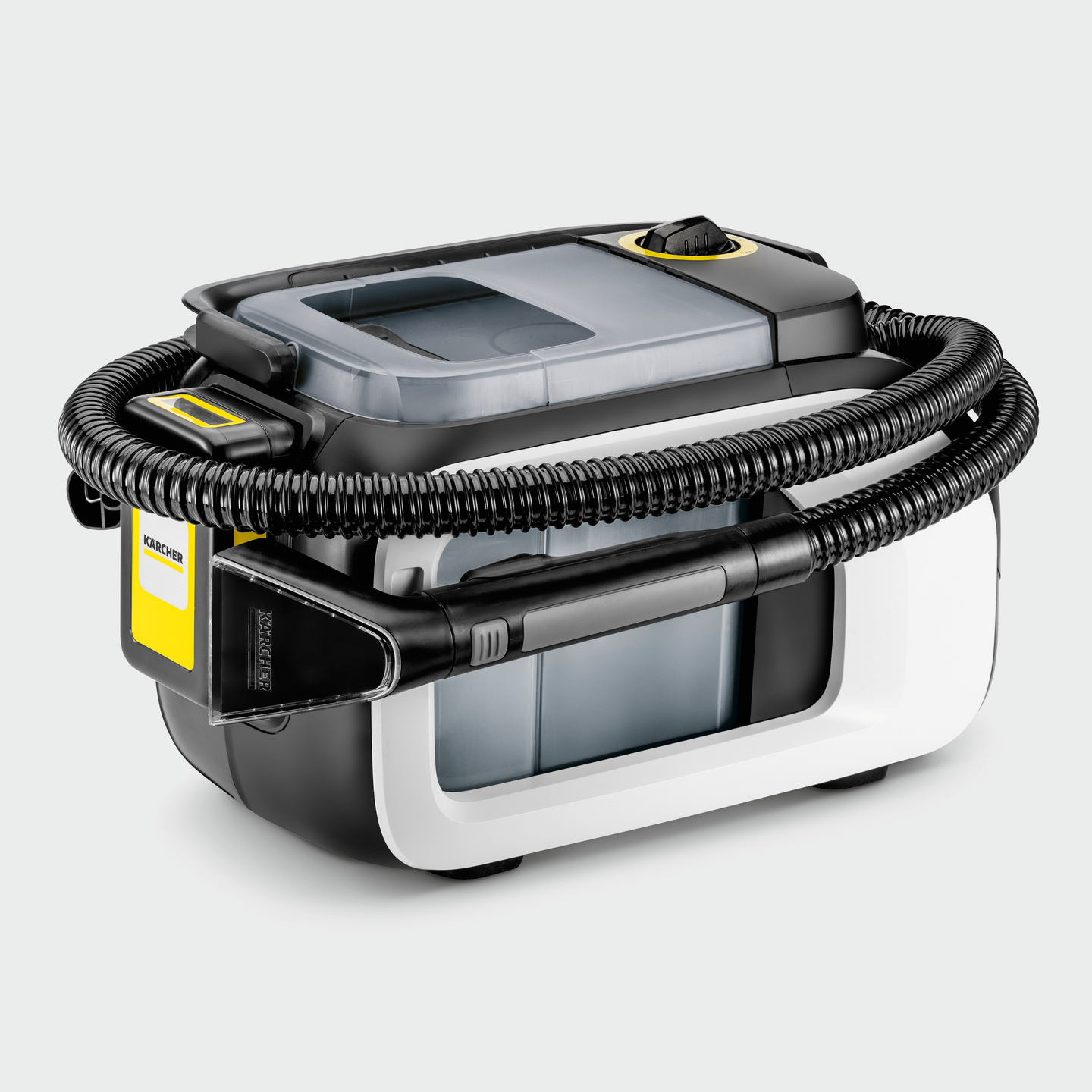 Syväpuhdistus maksimaalisella liikkumavapaudella: tehoakulla varustettu SE 3-18 Compact Home puhdistaa tekstiilipinnat perusteellisesti ja ilman jäämiä. Kompaktin muotoilun ansiosta laitetta ei ole vain kätevä käyttää, vaan sitä voidaan myös käyttää ilman lähellä olevaa pistorasiaa. Tämä mahdollistaa auton sisätilojen puhdistuksen alle puolessa tunnissa. Poistat lian auton istuimista, lattiamatoista, tavaratilasta sekä puutarhakalusteista ja verhoiluista välittömästi - yhtä tehokkaasti kuin pistorasiaan kytkettävillä tekstiilipesureillamme. Pitkä ja joustava imuletku integroidulla pesuaineletkulla takaa suuren mukavuuden ja joustavuuden myös vaikeasti saavutettavissa paikoissa. Puhtaan tuloksen aikaansaamiseksi tarvitaan puhtaat työkalut: kannettavan tekstiilipesurin itsepuhdistustoiminnon avulla laite poistaa myös lian ja bakteerit laitteesta itsessään, estäen epämiellyttäviä hajuja tai jäämiä kertymästä koneistoon.