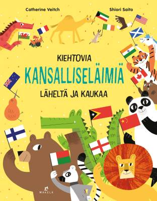 Suomen kansalliseläin karhu päättää järjestää juhlat! Karhu lähtee kiertämään maailmaa ja törmää reissullaan muihin kansalliseläimiin, jotka se kutsuu pirskeisiinsä vieraiksi. Kiehtovia kansalliseläimiä läheltä ja kaukaa esittelee joukon eläimiä, jotka edustavat kotiaan tavalla tai toisella. Matkan varrella opitaan hauskoja faktoja sekä eläimistä että niiden edustamista maista ja alueista. Iloinen kuvitus tekee tästä kirjasta riemukkaan löytöretken. Myös liput tulevat tutuiksi! Liity siis karhun seuraan ja tapaa mystinen skotlantilainen yksisarvinen, kiinalainen isopanda, sukupuuttoon kuollut mauritiuksendodo ja monia muita! Samalla kun juhlimme eläinkunnan monimuotoisuutta, muistamme niitä lajeja, jotka ovat hävinneet maapallolta.
