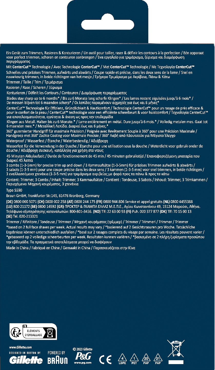Johdoton, monitoiminen King C. Gillette Style Master on täydellinen työkalu minkä tahansa partatyylin rajaamiseen ja trimmaamiseen. Se sisältää symmetrisen kamman kaksisuuntaista liikettä varten, sivuleikkurit ja delfiinikärkisen muotoilun tehokasta käyttöä varten yhdellä vedolla sekä 4 terää pitkien ja lyhyiden karvojen leikkaamiseen. Mukana yksi vaihdettava terä, joka kestää jopa 6 kuukautta, sekä 3 vaihdettavaa kampaa joustavaan trimmaukseen. CenterCut-teknologian ansiosta tarkkuus ja mukavuus iholla on erinomainen.