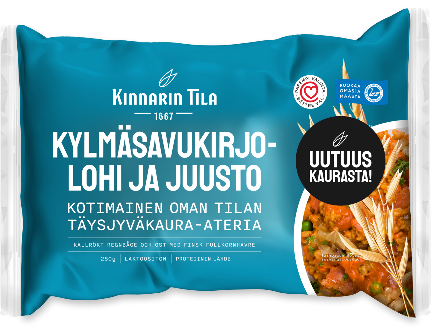 Kotimaista kirjolohta, oman tilan kauraa, maukkaita herneitä ja suussa sulavaa juustoa tillillä sävytettynä. Helppoa, herkullista ja terveellistä suomalaista ruokaa parhaimmillaan. Sydänystävällinen tuote.