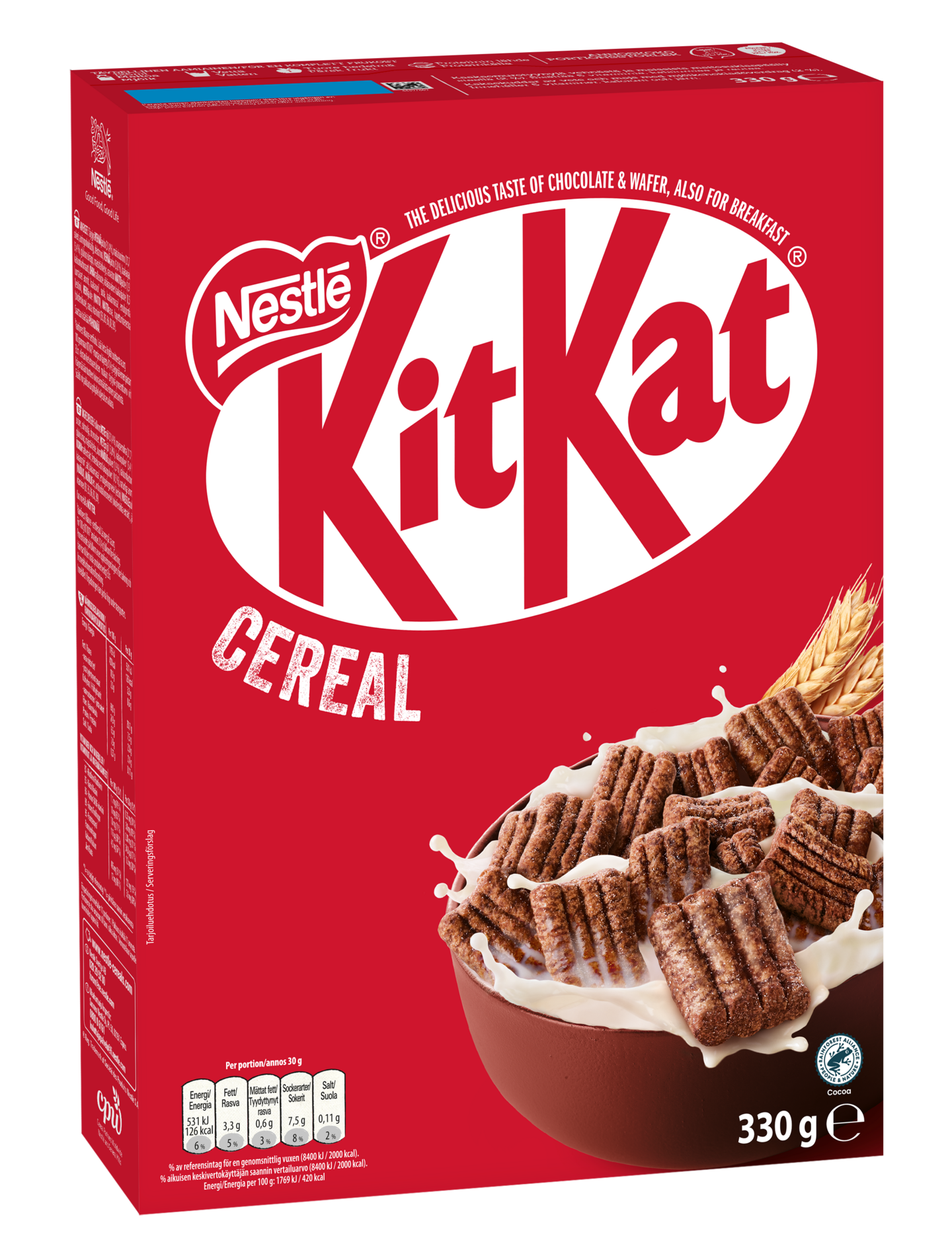 NESTLÉ KITKAT Murot 330 g KITKAT tekee aamiaisesta herkullisen Aloita päiväsi NESTLÉ KITKAT -muroilla ja nauti ikonisen KITKAT-välipalapatukan inspiroimasta mausta. Jokainen rapea muro on valmistettu täysjyväviljasta ja päällystetty suklaakuorrutteella, joka sulaa suussa ja tuo aamiaiselle ylellisen vivahteen. Tarjoa maidon tai kasvipohjaisen vaihtoehdon kanssa ja lisää tuoreita hedelmiä täydelliseen aamiaiseen.