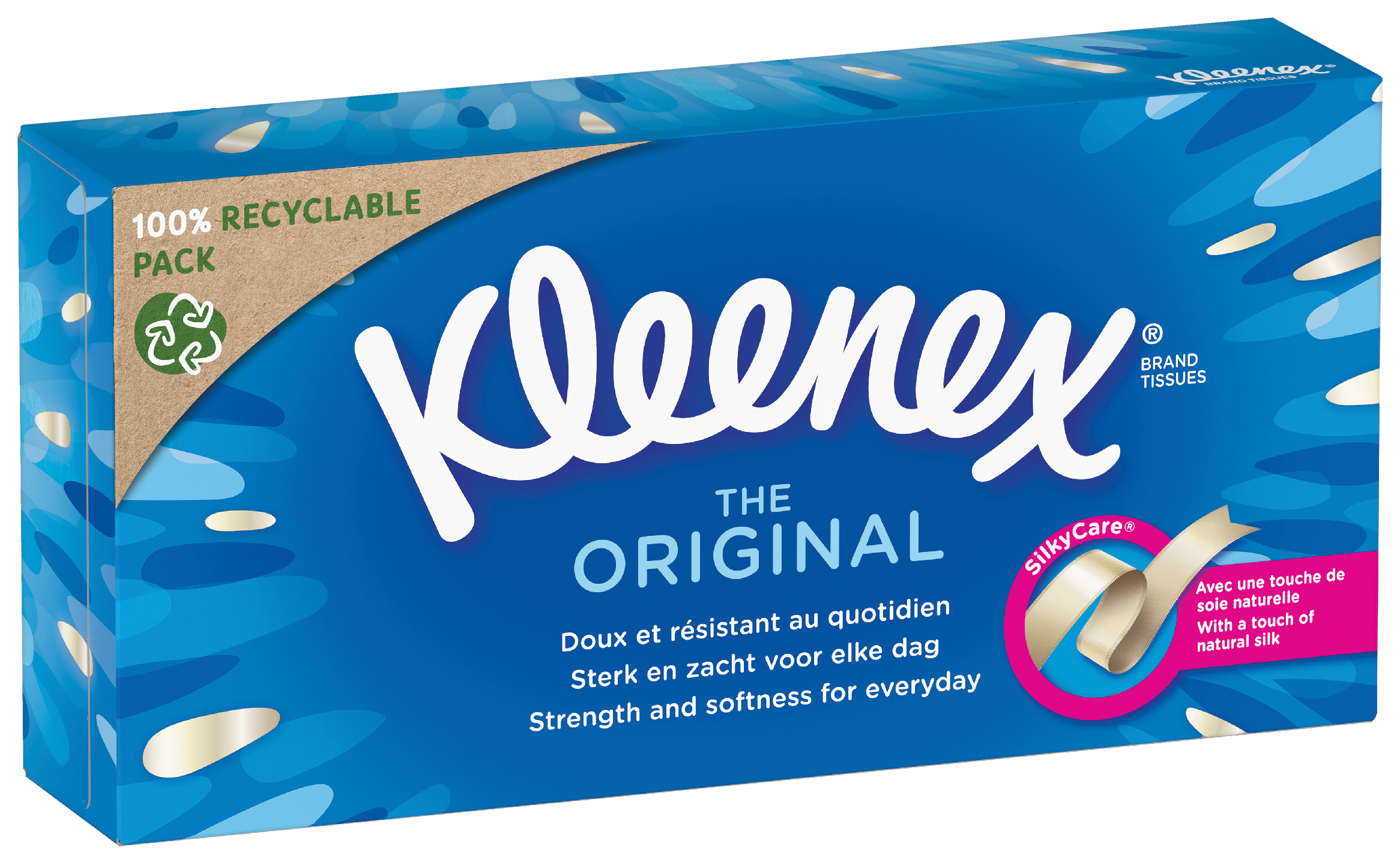 Kleenex Original, laadukkaita pehmeitä liinoja helposti suoraan laatikosta, jonka voit laittaa pöydälle kylpyhuoneeseen, autoon tai missä liinoja tarvitsetkin.