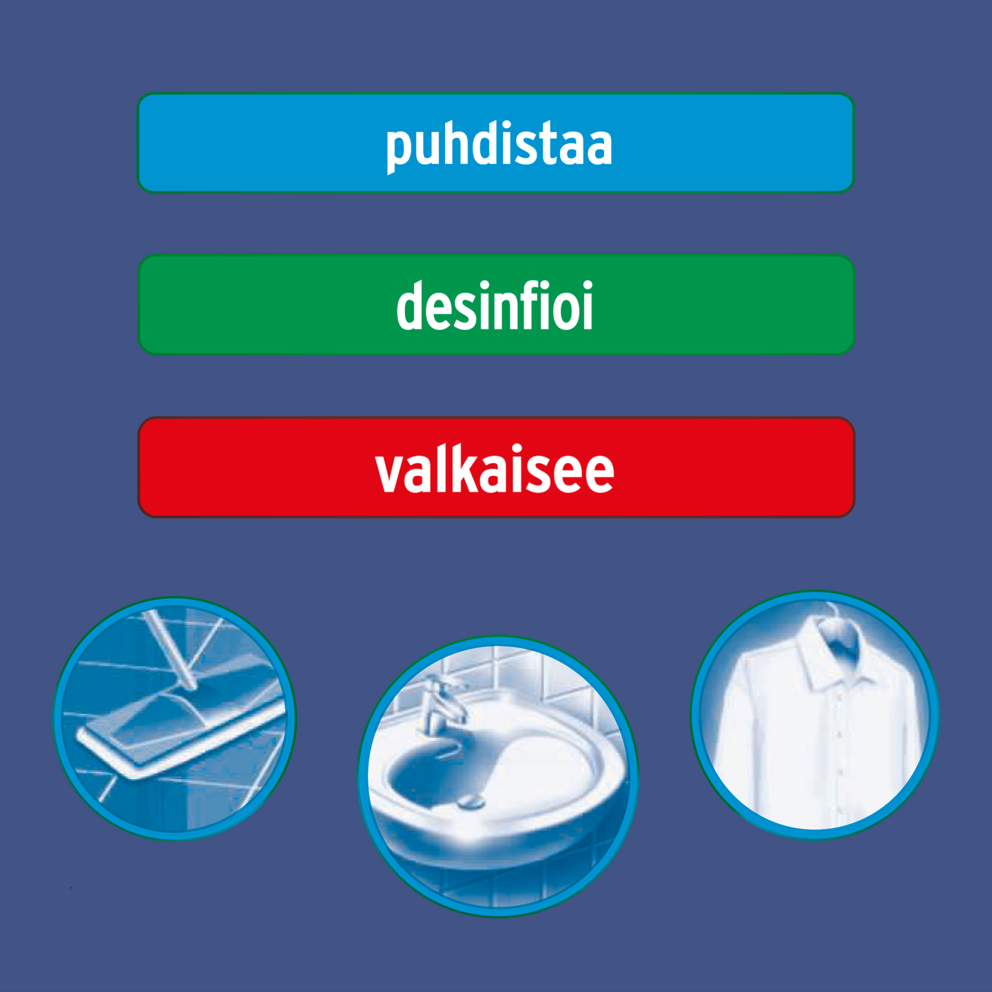 Klorin Original tekee kodistasi hygieenisen puhtaan poistamalla tehokkaasti hometta, bakteereita ja sieniä. Sen sisältämällä kloorilla on dokumentoitu vaikutus bakteereja ja viruksia vastaan. Klorinia voi käyttää myös pyykin valkaisemiseen ja se sopii monille pinnoille ja moneen eri tarkoitukseen. Käytä biosideja turvallisesti. Lue aina merkinnät ja valmistetiedot ennen käyttöä.
