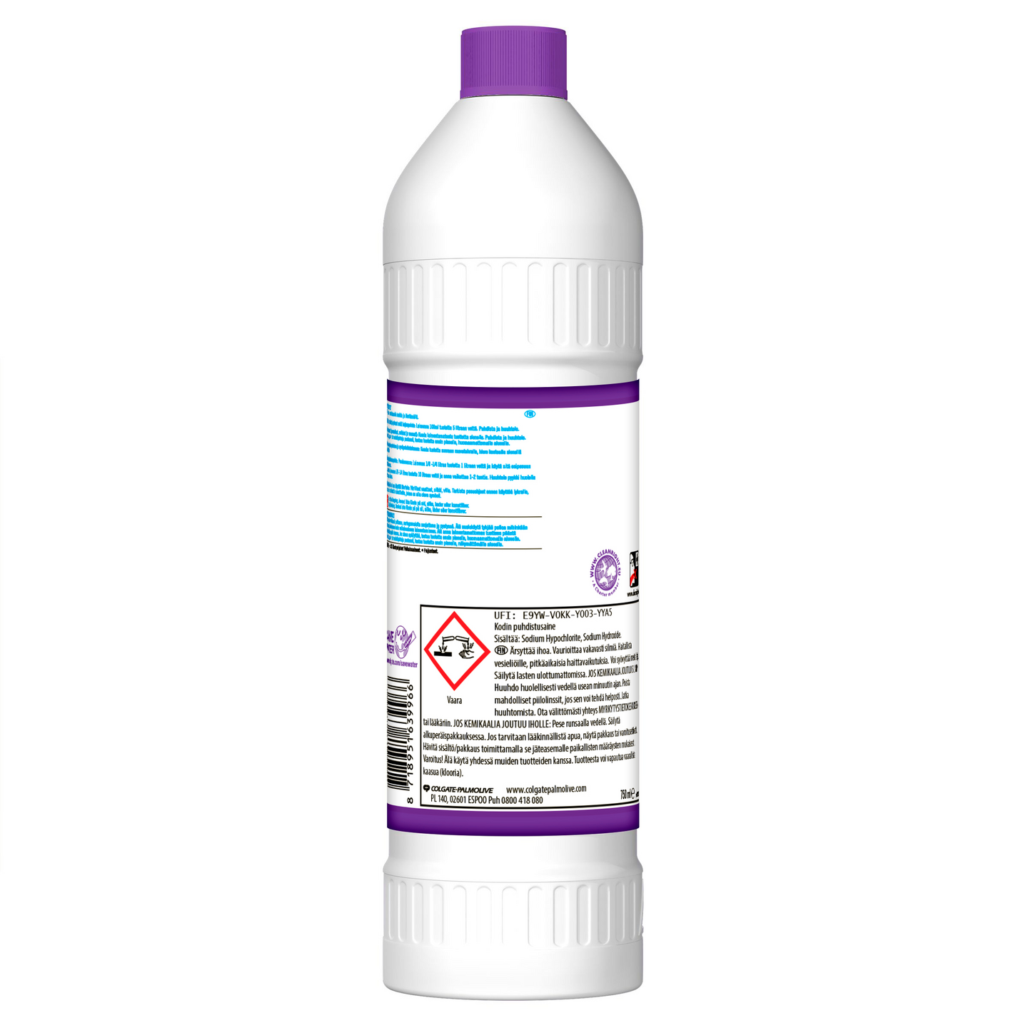Klorin Cleaning Laventeli puhdistaa välittömästi, valkaisee ja poistaa pahoja hajuja. Valkaisuainetta sisältävä puhdistusaine. Lue aina merkinnät ja valmistetiedot ennen käyttöä.