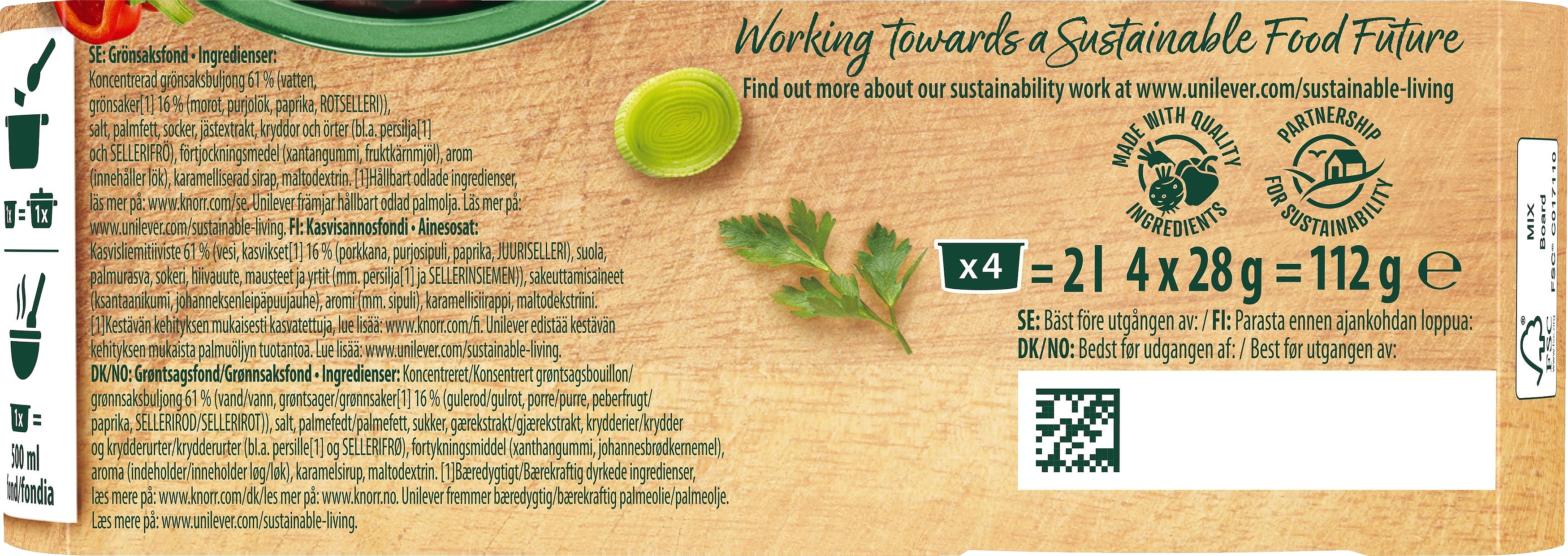 Knorr Fond ”du Chef” tiivistetty ja korkealaatuinen annosfondi, joka on valmistettu parhaista raaka-aineista. Voit valmistaa fondista liemen tai lisätä sen sellaisenaan ruokaan korostamaan ruoan luonnollisia makuja. Kokeile esimerkiksi kastikkeisiin, keittoihin ja pataruokiin sekä riisin tai pastan keitinveteen.