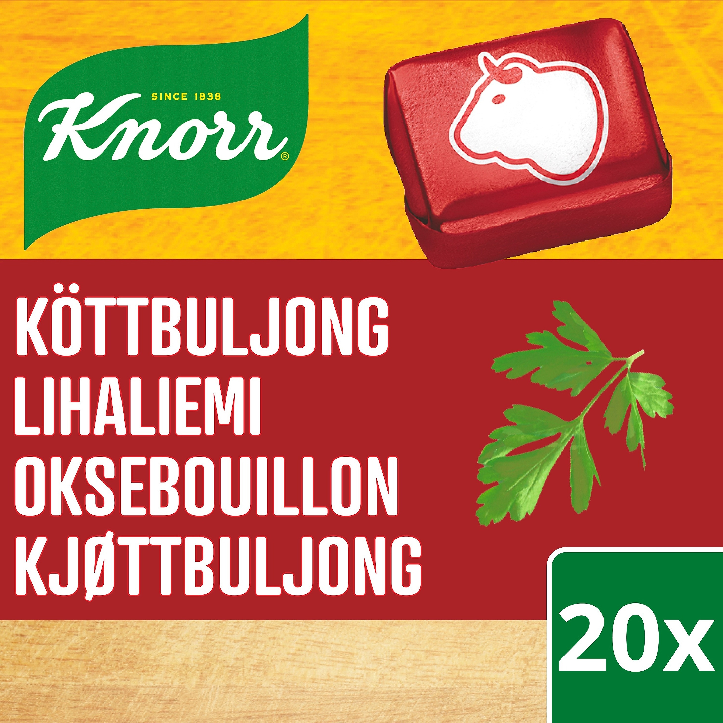 Knorr Liemikuutio Liha on täydellinen apu maukkaan ruoan valmistuksessa. Monikäyttöinen lihaliemikuutio sopii kastikkeiden pohjaksi, erilaisiin keittoihin sekä pataruokiin. Pakkaus sisältää 20 kuutiota ja yhdestä kuutiosta valmistuu 0,5 l valmista lientä. Maukas lihaliemi antaa nopeasti ja helposti suosikkiruokaasi pyöreän, täyteläisen ja luonnollisen maun. Käytä Knorr Lihalientä pohjana erilaisille liharuuille, esimerkiksi antamaan täyteläisyyttä seuraavaan Burgundinpataan, lihastorganoffiin ja lihakeittoon. Knorr Lihaliemikuutio on myös täydellinen vaihtoehto, kun haluat aasialaiseen lihawokkiisi täyteläisyyttä. Suolan sijaan mausta seuraavalla kerralla esimerkiksi riisi, pasta tai vihannekset keitettäessä lihaliemellä. 100% luonnollisia ainesosia. Laadukas ja maukas ruoka on intohimomme Knorrilla! Siksi pyrimme aina kehittämään uusia jännittäviä ruokatuotteita, jotka tekevät ruokailukokemuksestasi erityisen maistuvan. Yksi vahvimmista puolistamme on laaja tuntemus erilaisista paikallisista ruokaperinteistä – huolimatta siitä, että olemme niin suuri kansainvälinen brändi. Olemme tehneet Knorrilla vuosikymmenten ajan työtä luodaksemme korkealaatuisia tuotteita, jotka valmistetaan parhaista raaka-aineista. Tämä siksi, että haluamme auttaa sinua valmistamaan hyvää, yksinkertaista ja terveellistä ruokaa, jossa on runsaasti makua. Rakkaus laadukkaaseen ja maukkaaseen ruokaan on johtotähtemme. Se vie meidät tulevaisuuteen, joka huomioi paremmin yhteiskuntamme ja ympäristömme. Tulevaisuuteen, jossa kaikki raaka-aineemme ovat kestävästi tuotettuja. Me Knorrilla haluamme uudistaa ruokailutottumuksia, mutta emme voi tehdä sitä yksin. Siksi kutsumme sinut mukaan. Rakennetaan yhdessä vihreämpää tulevaisuutta. Vieraile verkkosivuillamme knorr.com/fi nähdäksesi tuotteemme ja reseptimme. Tutustu kaikkeen siihen, mikä meitä inspiroi kestävän tulevaisuuden luomiseen.