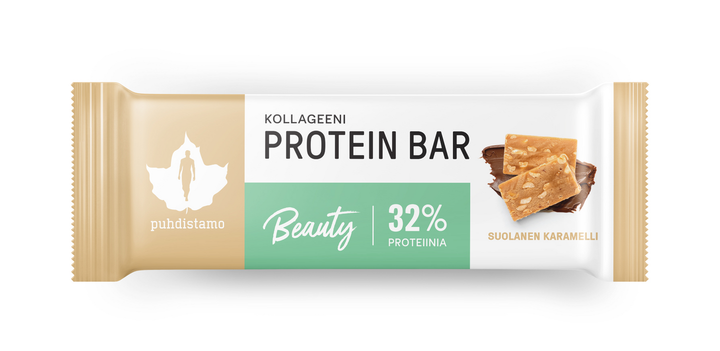 Beauty-kollageenipatukka on aidosti herkullinen proteiinipatukka. Sen biotiini vahvistaa ihon ja hiusten kuntoa. Nauti ja herkuttele itsesi kauniiksi!