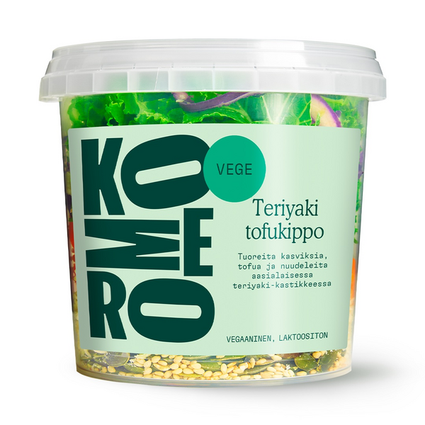 Sisältää runsaasti tuoreita kasviksia, täyttävää nuudelia, rouskuvia siemeniä, tofua sekä Komeron herkkukastikkeen.