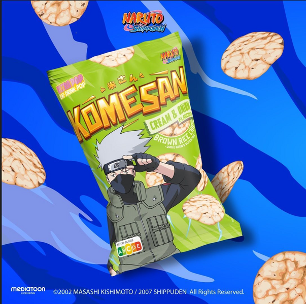 Komesan riisisipsi ruskeasta riisistä valmistettu, makuna Kerma ja sipuli.