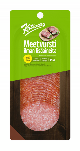 Lisäaineeton meetvurstimme on Suomen ensimmäinen täysin lisäaineeton tuote kauppojen meetvurstihyllyissä. Lihaisa, erittäin hyvän makuinen meetvurstimme valmistetaan laadukkaista raaka-aineista täysin ilman lisäaineita eli E-koodeja. Kokeile! Laktoositon, gluteeniton, maidoton.
