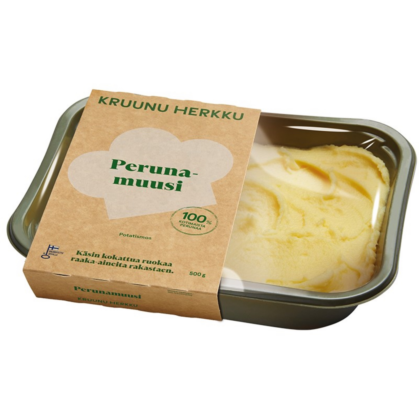 Kokonaisina keitettyjä suomalaisia perunoita, voita ja kermaa sekä ripaus suolaa - siitä syntyy meidän kuohkea perunamuusi sinun arkeasi helpottamaan -Kruunu Herkku – käsin kokattua ruokaa Juvalta, raaka-aineita rakastaen.