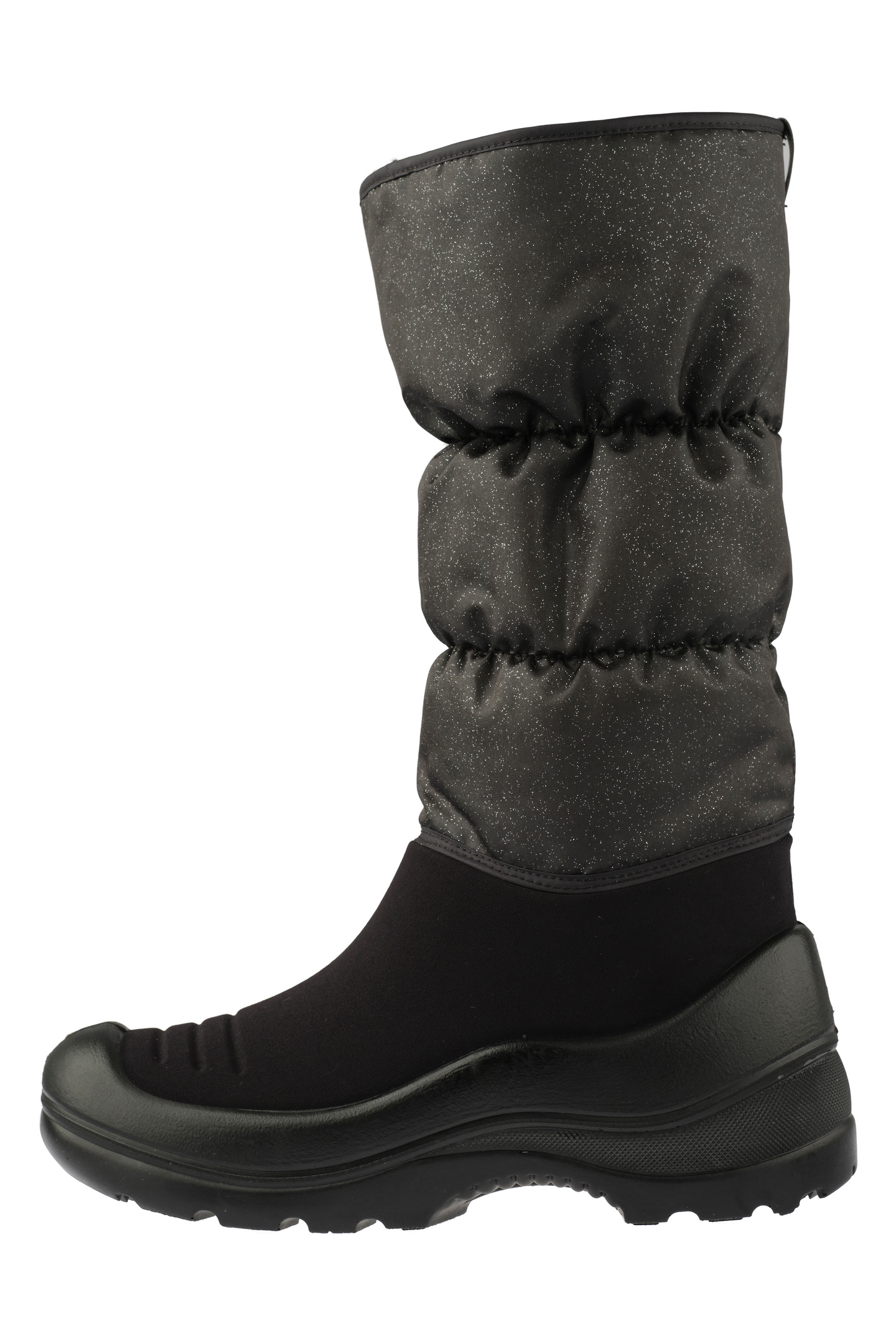 Glitter lasten ja naisten talvisaappaassa on ihanan kimalteleva varsi yhdistyneenä järkevään vedenpitävään alaosaan, mikä yhdistelmä! Kaikkien Kuoma-saappaiden tapaan myös Glitter-saappaassa on tilava lesti, kaksi vaihdettavaa pohjallista ja iskua vaimentava, joustava ulkopohja. Vegaaninen tuote.