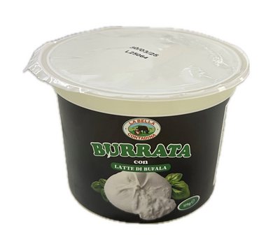 Aito italialainen puhvelinmaidosta valmistettu pehmeä ja aromikas tuorejuusto. Kiinteä mozzarellakuori ja sisällä pehmeä kermainen valuva täyte. Burrata on parhaimmillaan huoneenlämpöisenä. Herkullista sellaisenaan ripauksella oliiviöljyä ja rouhaisulla suolaa & pippuria, salaattipedillä ja pizzan päällä.