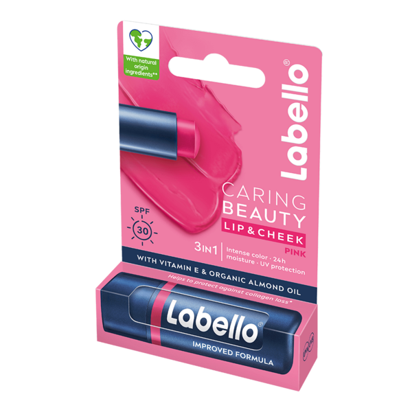 Labello Caring Beauty Pink - sävyttävä voide huulille ja poskille. Kosteuttaa huulia ja ihoa 24 tunnin ajan. Voidemainen koostumus antaa intensiivisen värin, käytä huulivoiteena, poskipunana tai molempina! 3in1-koostumus tarjoaa sävyn, hoitoa ja suojaa! Sisältää E-vitamiinia ja luonnollista manteiöljyä, joka ravitsee tehokkaasti huulia. Suojakerroin 30 suojaa ihoa UV-säteilyltä ja sen aiheuttamalta kollageenin vähenemiseltä. Tekee huulista ihanan pehmeät ja sileät ja ehkäisee niiden kuivumista. Voide on helppo levittää, kokeile myös kerrostaa yhdessä muiden Labello Caring Beauty -sävyjen kanssa ja luo ainutlaatuinen sävysi!