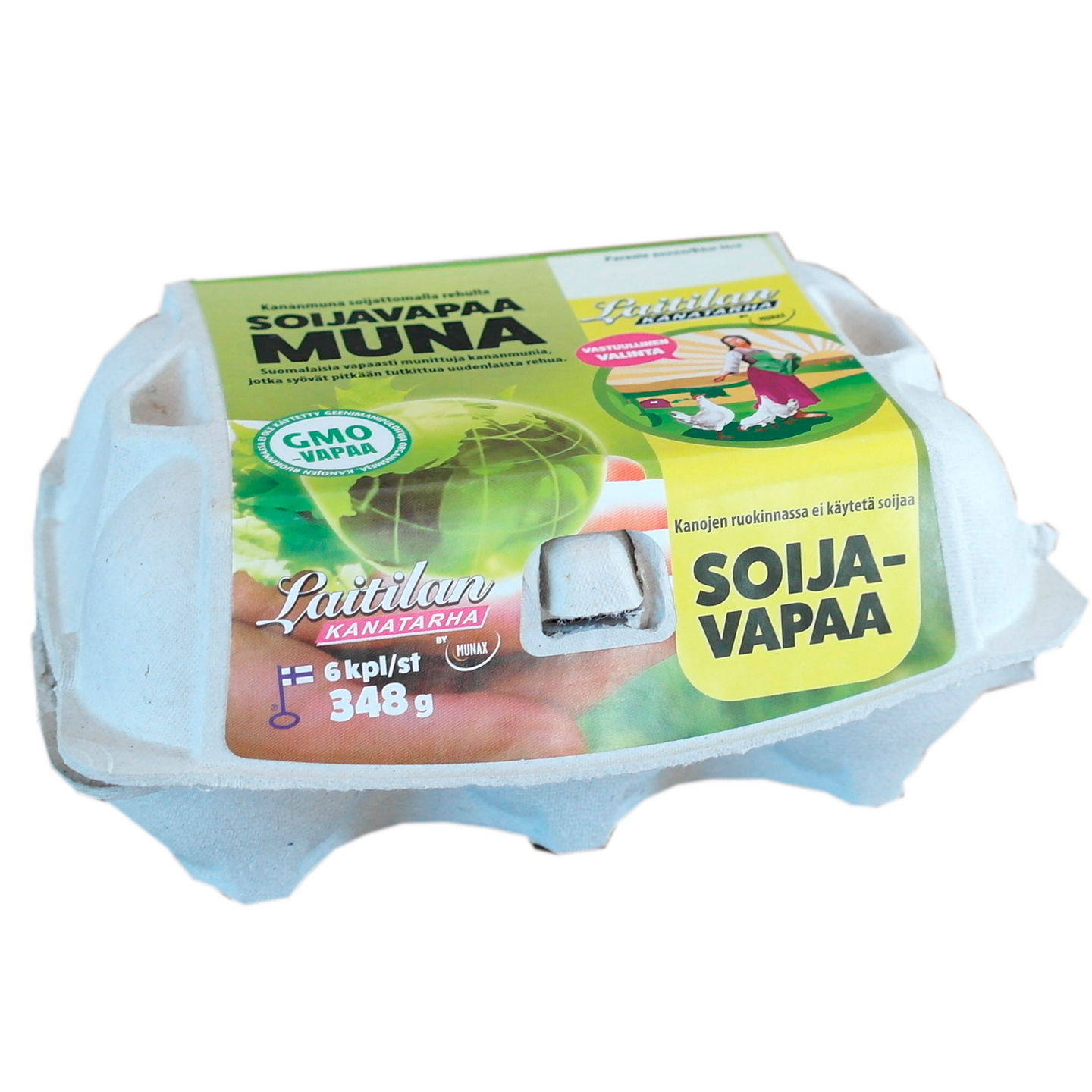 Miksi soijavapaa kananmuna? Kanojen täysmääräiseen ravintoon kuluu tarpeellinen määrä valkuaista ja tällä hetkellä kanojen rehuihin lisätään vastuullisesti tuotettua soijaa. Nyt Munax Oy on tuotekehittänyt myös rehun, jossa soija korvataan kotimaisilla valkuaislähteillä. Tämä uusi soijavapaarehu on vaatinut pitkäkestoista tuotekehitystä. Mistään ihan pienestä tuotekehityksestä ei ole kyse, eikä muutos tapahdu yhdessä yössä, mutta on iso askel vastuullisuuteen. Vastuullinen valinta!