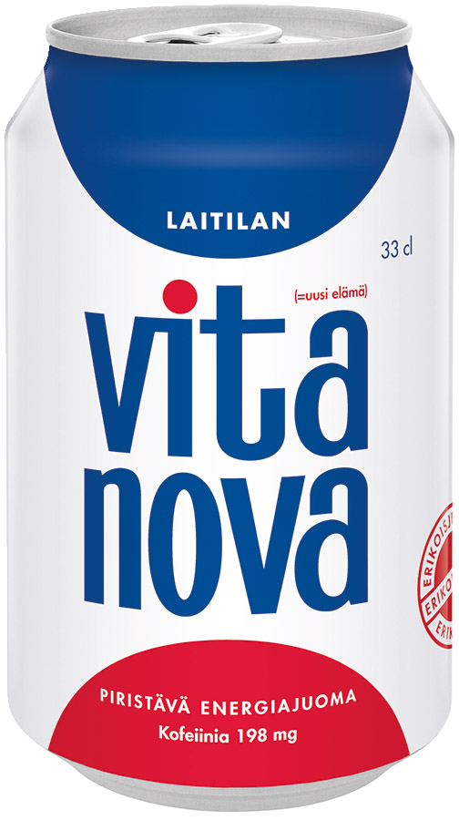 Piristävä ja vitaminoitu energiajuoma. Muiden energiajuomien teho perustuu guaranaan ja tauriiniin, joiden vaikutuksesta syntyy myös niille tunnusomainen maku. Näitä aineita ei Vita Novassa ole koskaan ollut, eikä niitä lisätty nytkään: Laitilan Vita Nova kopauttaa unihiekat pois silmistä kofeiinin ja neljän eri B-vitamiinin voimin. Tämän vuoksi Vita Novan maku on aivan omanlaisensa. Se maistuu kolajuomalta, jossa on ripaus sitrusta. Tätä energiajuomaa voi juoda nautiskellen! Suositellaan tarjoiltavaksi kylmänä.