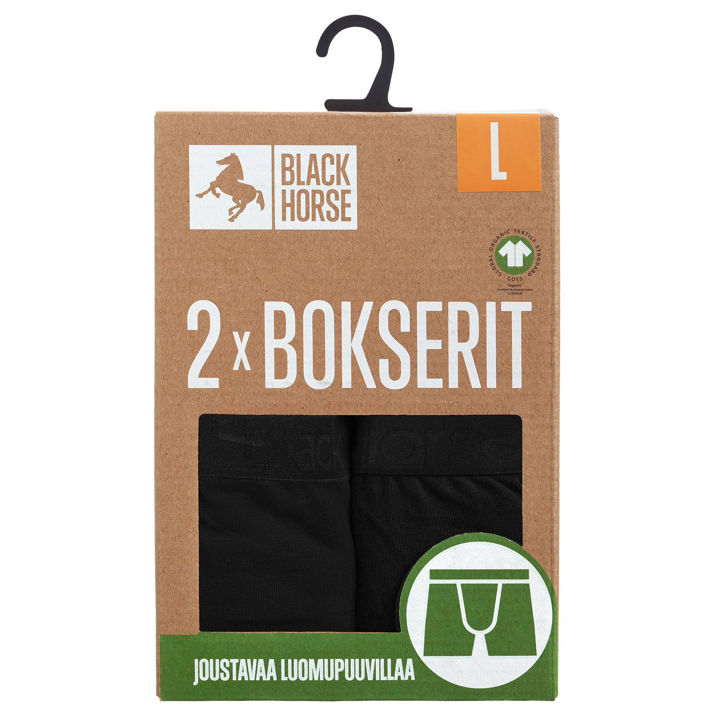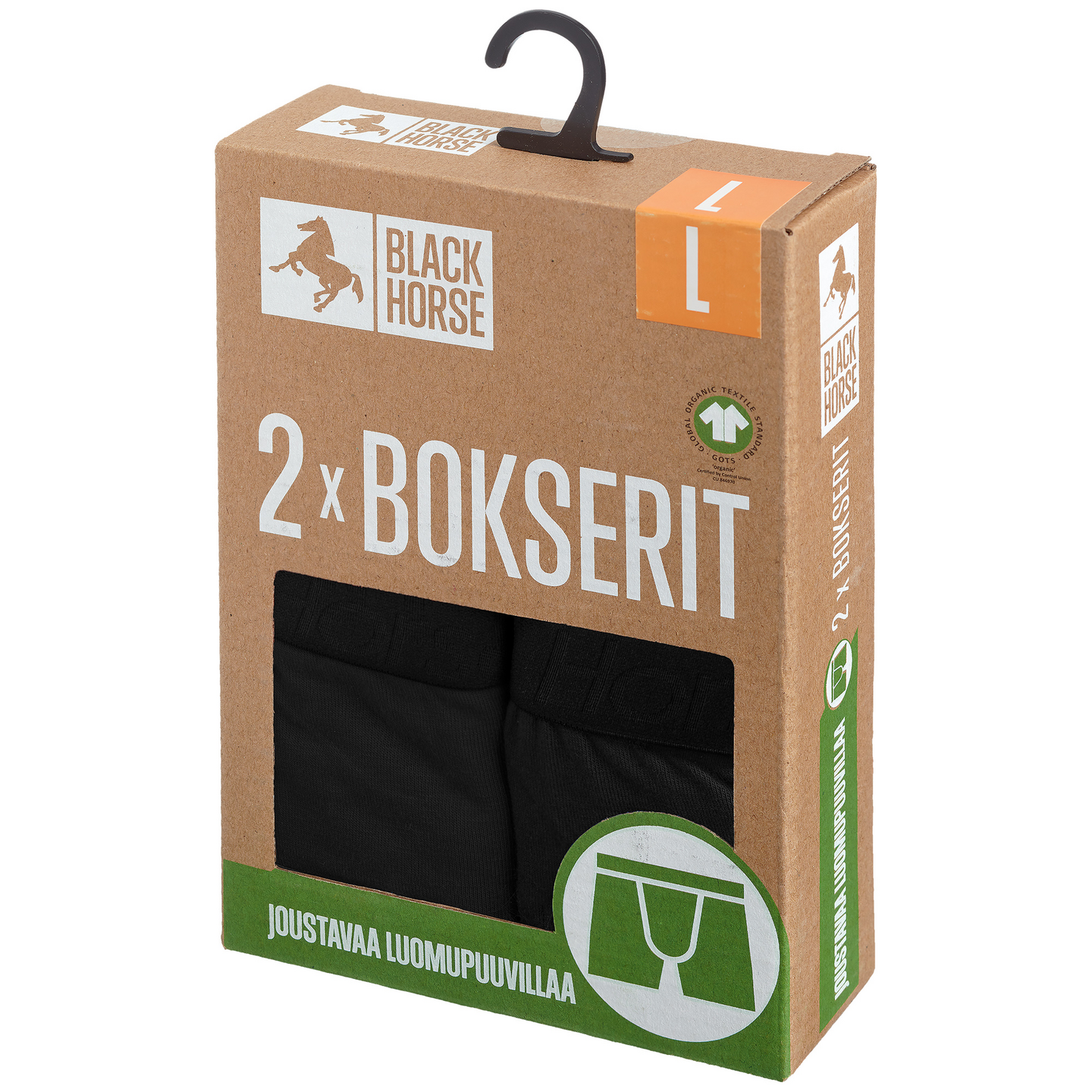 Black Horsen aukottomat bokserit kahden kappaleen pakkauksessa. Materiaali on miellyttävän pehmeää luomupuuvillaa ja elastaania. Pehmeä vyötärönauha, ihanteellinen lahkeenpituus ja litteät saumat takaavat hyvän istuvuuden ja täydellisen käyttömukavuuden koko päiväksi. Kaksinkertainen etuosa. Ei kutittavia tai hiertäviä etikettejä - pesuohjeet painettu suoraan kankaalle. GOTS-sertifiointi takaa tuotteen ekologisuuden ja eettisyyden huomioiden koko tuotantoketjun.