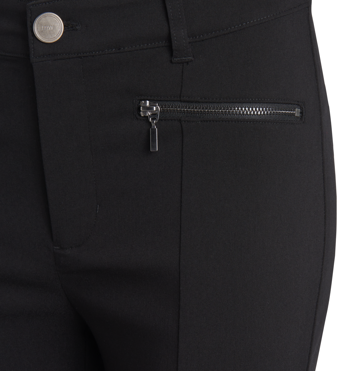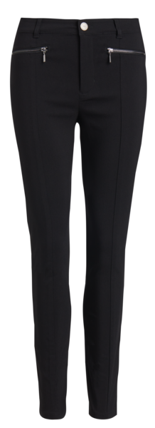 Napakasta kankaasta valmistetut mukavat ja siistit housut, joissa on edessä vetoketjukiinnitys. Housuissa on edessä saumat sekä vetoketjukoristetaskut ja vyölenkit vyötärönauhassa.
