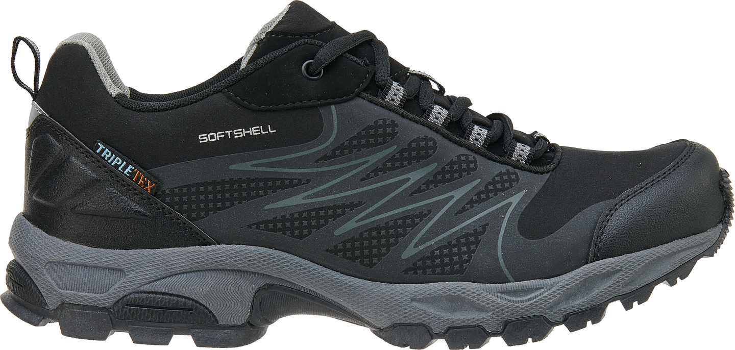 Aikuisten matalat vedenpitävät ulkoilukengät ohuella vuorella. Softshell päällinen, Tripletex-vedenpitävä kalvo sekä pitävä pohja lisäävät käyttömukavuutta.