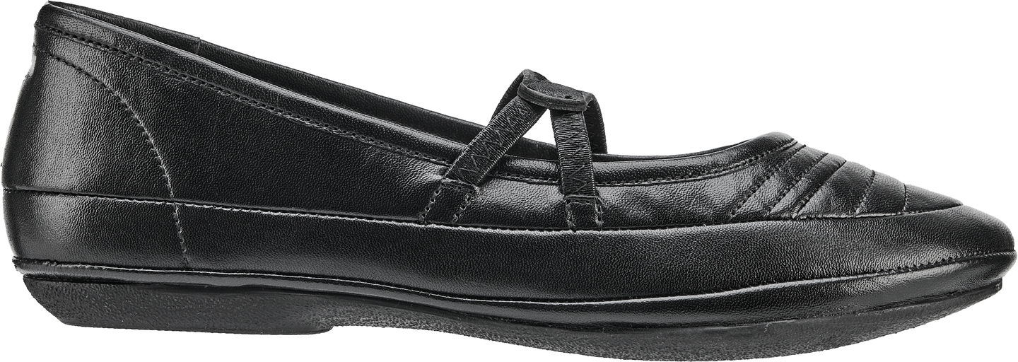 Naisten ajattomat nahkaballerinat. Päällä pantamaiset kuminauhat.