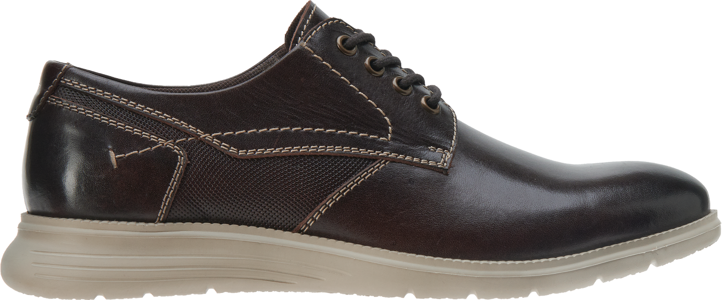 Miesten mywear kävelykengät nahkaa. Tilava lesti ja nauhakiinnitys. Vaaleat tikkaukset luo kivaa kontrastia tummanruskealle nahalle.