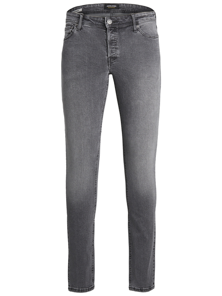 Miesten harmaat slim fit-farkut, joissa taskut edessä ja takana.