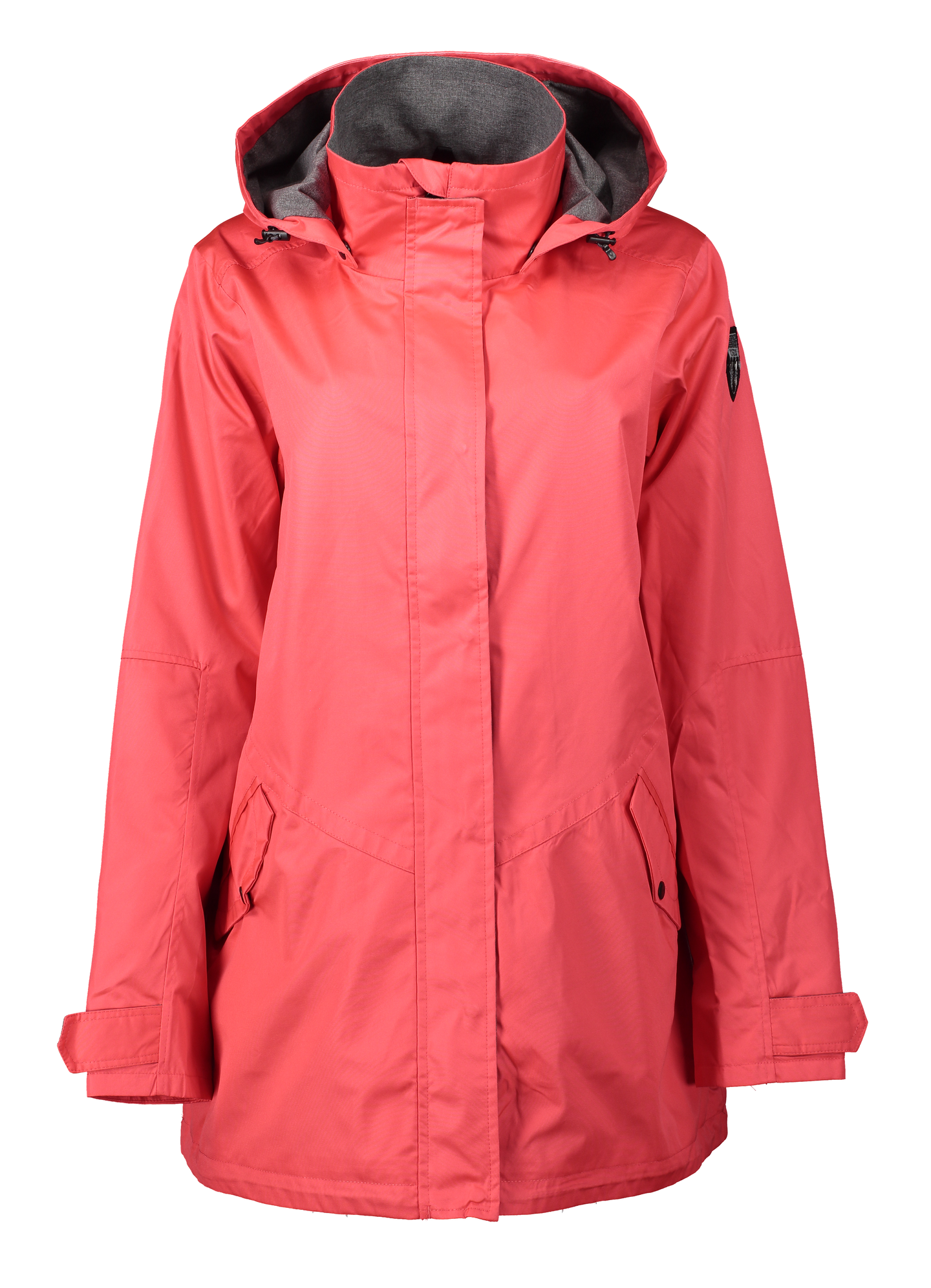 Torstai takki naisille. Tuote on valmistettu kestävän kehityksen ympäristö- ja sosiaaliset näkökulmat huomioiden. Tuotteessa on käytetty kierrätettyjä materiaaleja, jotka kuormittavat ympäristöämme vähemmän. Käytetty materiaali on kierrätetyistä muovipulloista valmistettua REPREVE®-kuitua. Kankaan pinta on käsitelty vettä hylkiväksi. Vedenhylkivyyskäsittely on tehty käyttäen Bionic-Finish Ecoa, joka on tehokas, ekologinen vaihtoehto ilman PFC-yhdisteitä. Säädettävä ja irrotettava huppu. Säädettävät hihansuut ja helma. Hieman väljempi C+-mitoitus. Hengittävä verkkovuori.