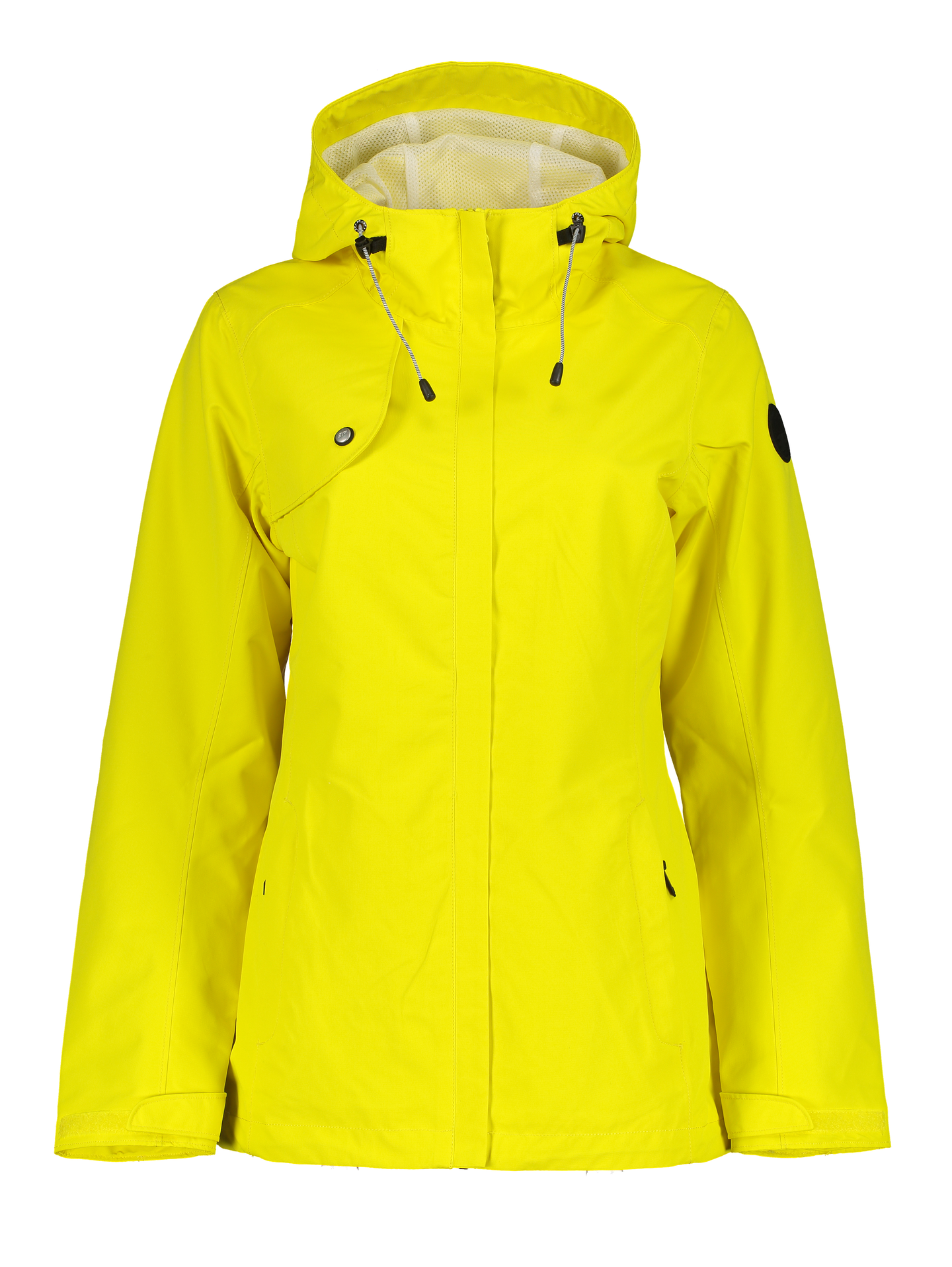 Icepeak takki naisille. Toiminnallisuuteen ja mukavuuteen on kiinnitetty erityistä huomiota A.W.S. ACTIVE -tuotteen suunnittelussa, joten se sopii sekä aktiiviseen että rentoon liikkumiseen. Kankaan pinta on käsitelty vettä hylkiväksi. Vedenhylkivyyskäsittely on tehty ilman PFC-yhdisteitä. Kaikki saumat on teipattu, mikä tekee tuotteesta täysin vedenpitävän. Kankaan tekniset arvot: 5 000 mm / 5 000 mvp (vesipilari/hengittävyys). Valmistettu kaksikerroksisesta kankaasta, jossa vedenpitävä kalvo on yhdistetty toiminnalliseen materiaaliin. Pidennetty ja suojaava takahelma. Vetoketjullisia taskuja. Säädettävä kiinteä huppu. Säädettävät hihansuut ja helma.