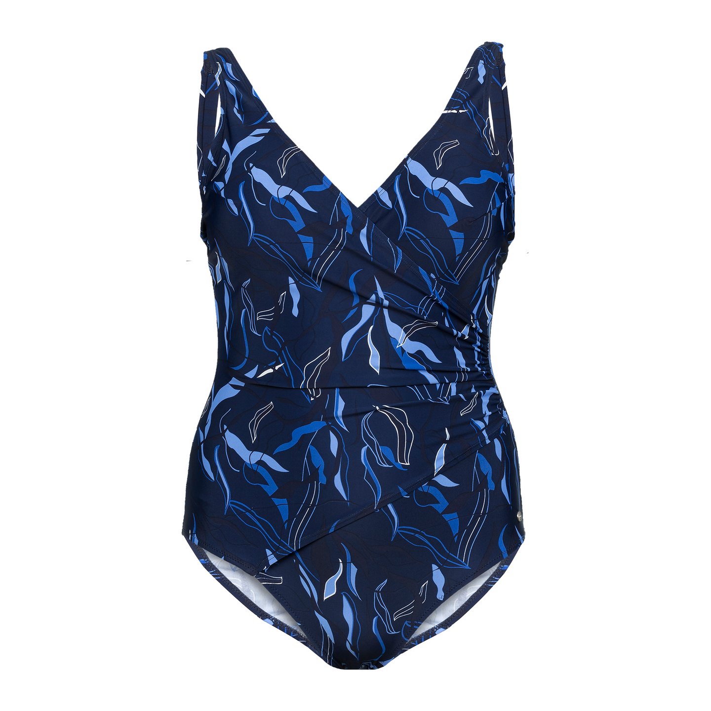 Finnwearin muotoileva kietaisumallinen D-mitoitettu uimapuku. Kevyesti topatussa uimapuvussa on imarteleva rypytys sivussa. Leveät ja säädettävät olkaimet. Vuoritettu etuosa. Uimapuku on tehty kestämään käyttöä, ja neuloksen käsittely suojaa materiaalia kloorilta, merivedeltä ja auringolta. Valmistettu Global Recycled Standard -sertifioidusta kierrätetystä polyamidista.