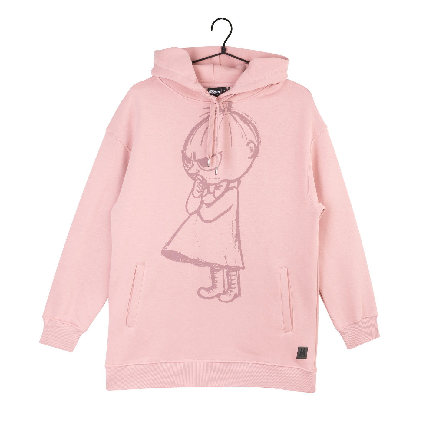 Pehmeä ja lämmin naisten muumiaiheinen huppari. Oversize-mallisessa hupparissa on taskut ja sen hupussa on kiristysnarut. Hupparin pituus olkapäältä helmaan koossa S on 76 cm.