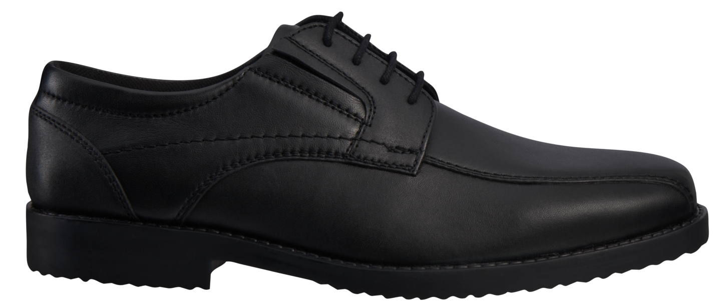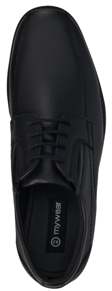 Mywearin miesten kävelykenkien päällinen on mustaa nahkaa. Ulkopohja on hyvin kuvioitua termoplastista kumia ja väriltään myös musta. Sisävuori on tekstiiliä. Kengissä on nauhakiinnityksen vieressä kaksi venykettä lisäämässä käyttömukavuutta.