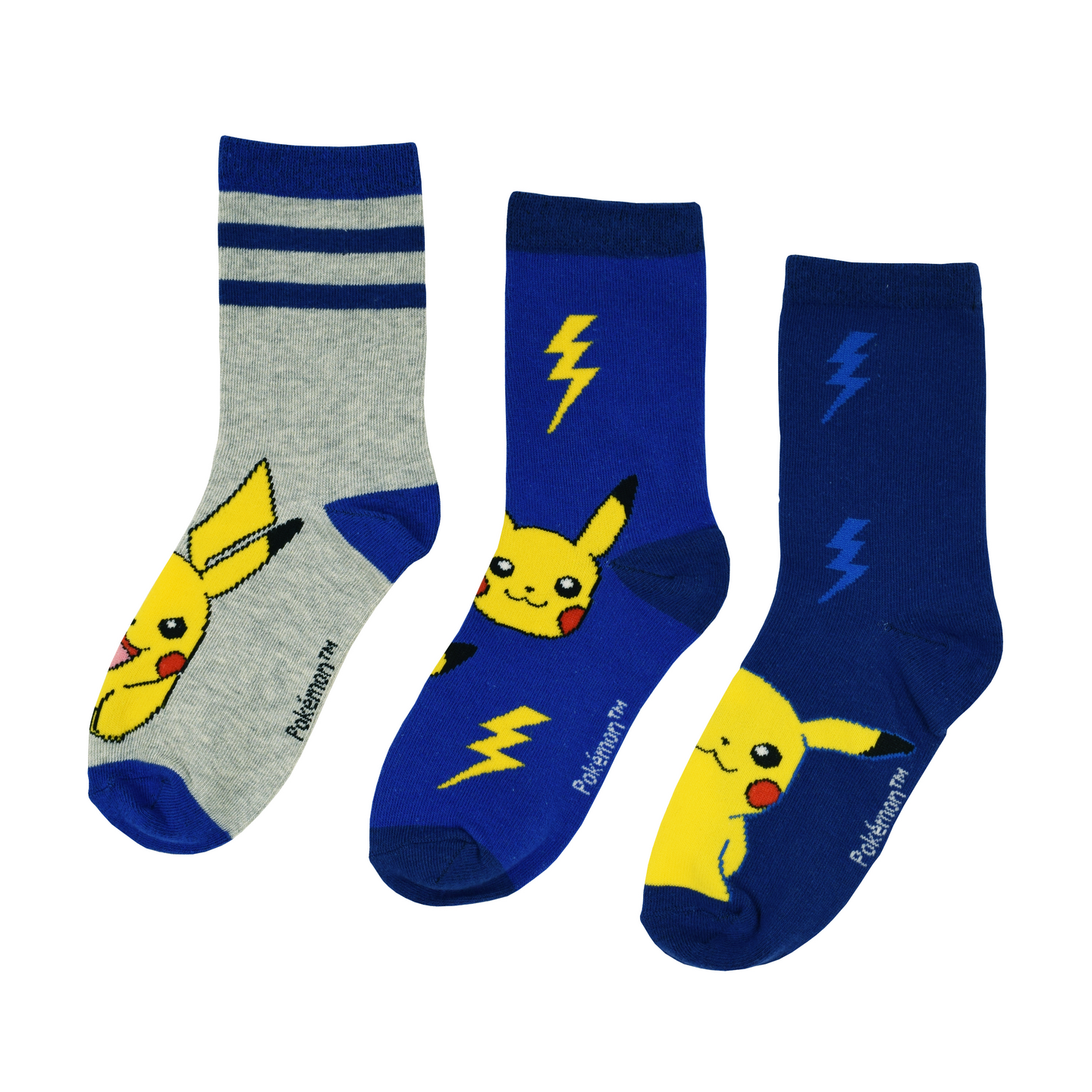 Astu Pokémon-maailmaan näiden upeiden sukkien avulla! Tässä 3-parin paketissa jokainen päivä on uusi seikkailu, sillä jokainen sukka on erilainen ja koristeltu Pikachun kuvilla. Väritykseltään sukissa on tummansinistä, sinistä ja harmaata. Valmistettu 65% puuvillasta, 33% polyesterista ja 2% elastaanista, nämä sukat ovat sekä mukavat että kestävät.