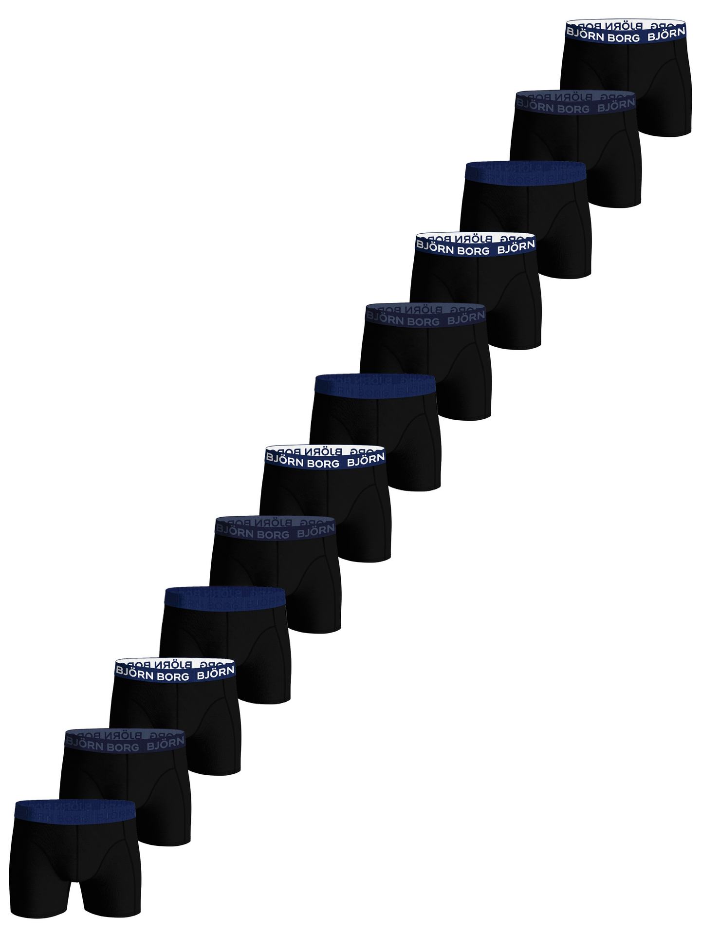 Björn Borg miesten bokserit 12kpl paketissa. Materiaali on pehmeää ja kestävää joustopuuvillaa. Vyötäröresorissa on toistuva Björn Borg teksti.