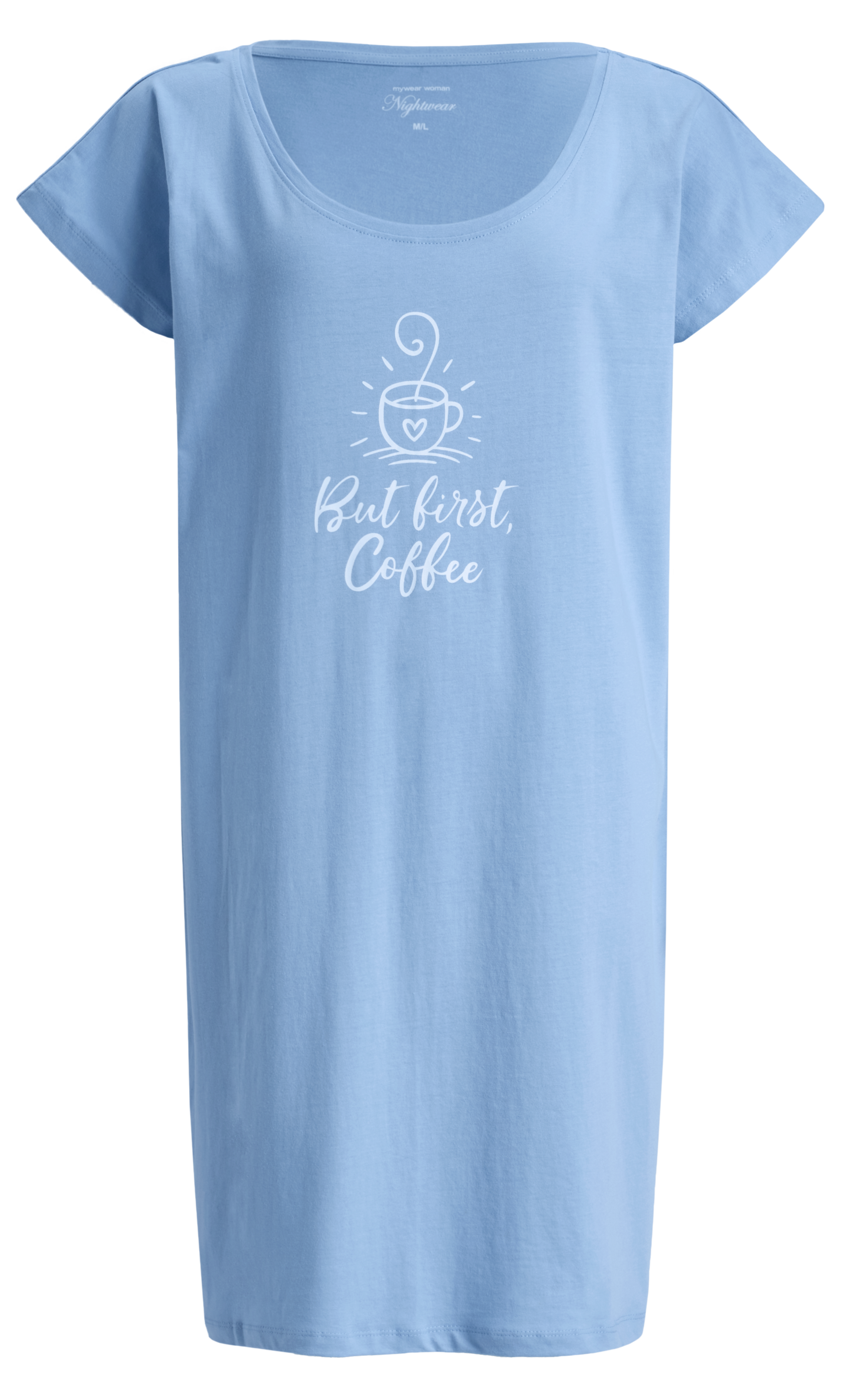 Naisten holkkihihainen paituli o-pääntiellä, edessä But first coffee painatus. Mallissa on reilu mitoitus. Selän pituus koossa M on 93cm. Materiaali puuvillaa. Valitsemalla puuvillatuotteitamme tuet sitoutumistamme Better Cottonin tavoitteisiin. Tämä tuote on hankittu massatasejärjestelmän avulla, joten se ei välttämättä sisällä Better Cotton -puuvillaa. Lue lisää osoitteesta bettercotton.org/massbalance.