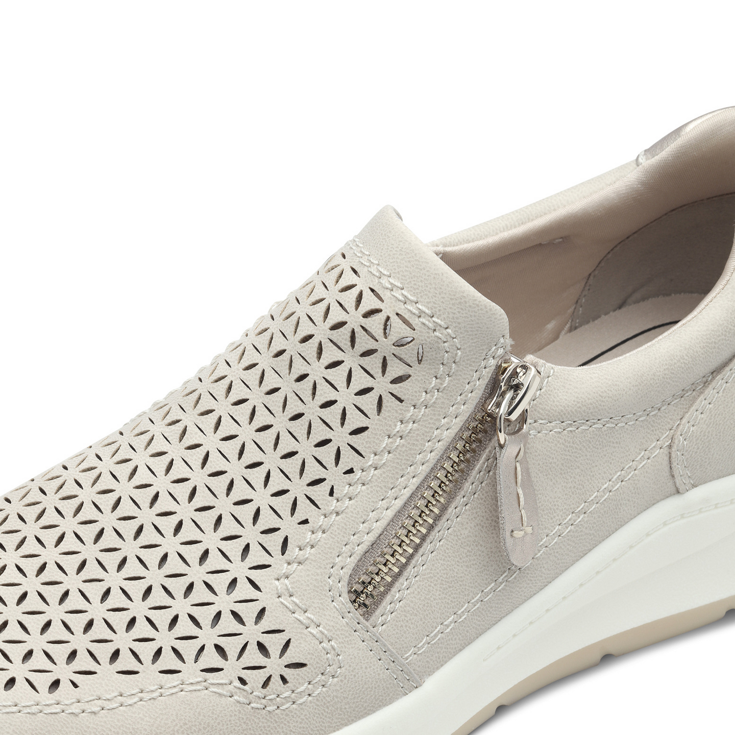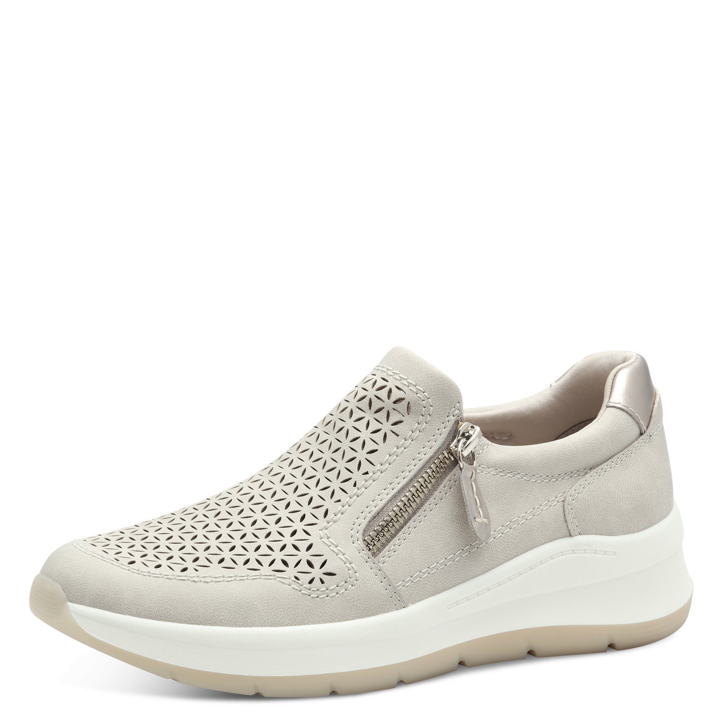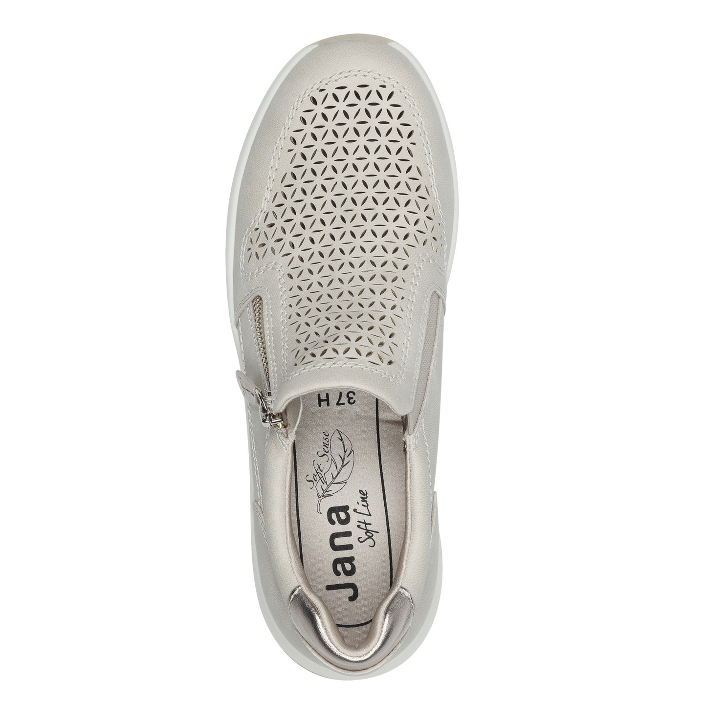 Kaunis kävelykenkä mukavista, mutta tyylikkäistä jalkineistaan tunnetulta Jana shoes -brändiltä. Jana shoesin jalkineille ominaista on leveä H-lesti, ja se pätee myös tämän kyseisen kävelykengän kohdalla. Tämä jalkine on helppo pukea jalkaan sivulla olevan vetoketjun ansiosta. Tässä jalkineessa on tekstiilinen sisävuori ja -pohja, ja sen koron korkeus on 5 cm.
