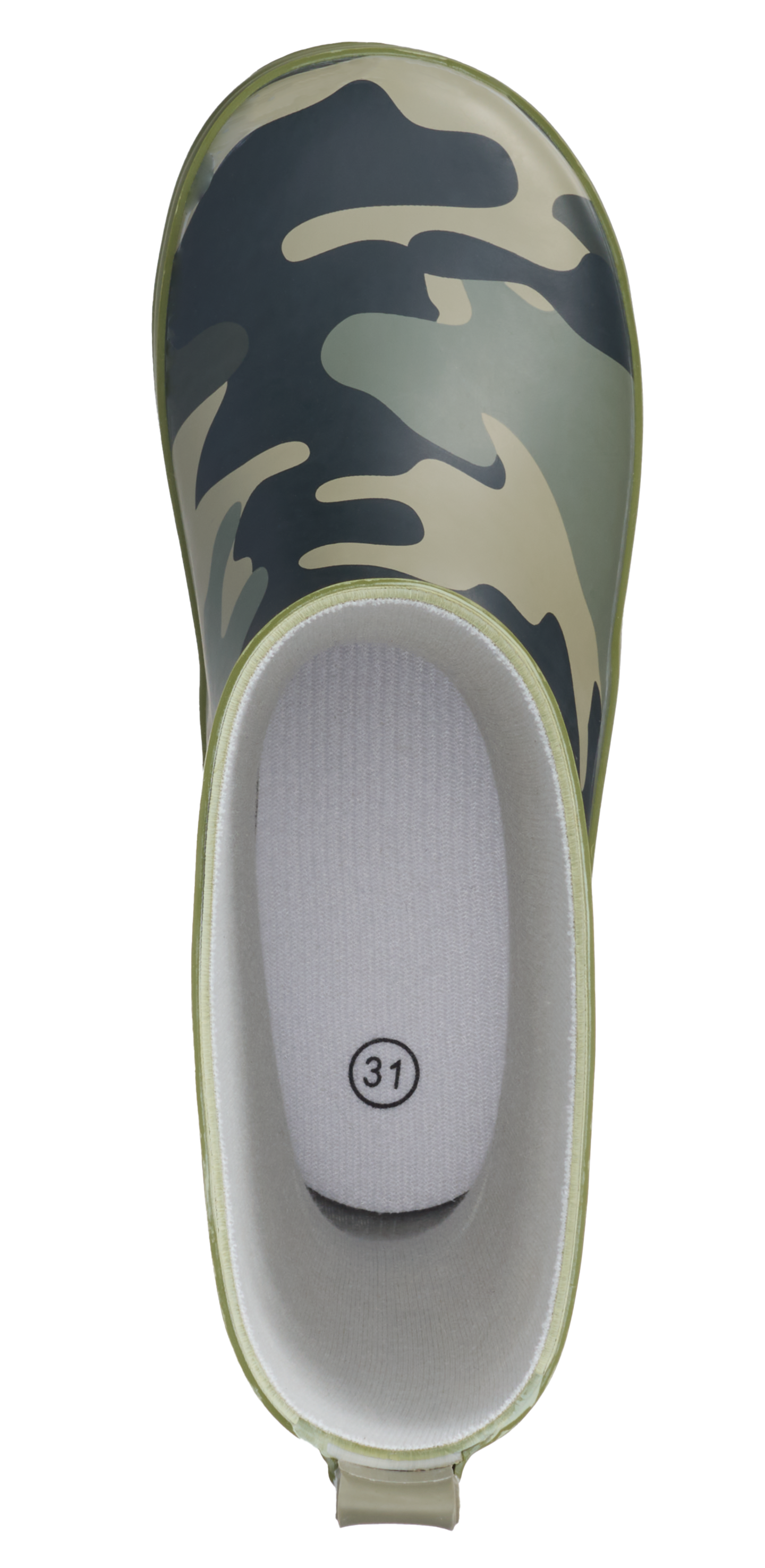 Lasten kumisaappaat tekstiilivuorella. Saappaan takaosassa on vetolenkki pukemisen helpottamiseksi. Karkeakuvioinen pohja, jossa on hyvä pito.