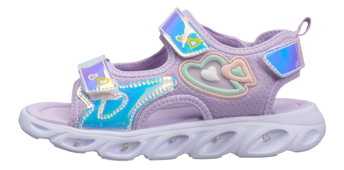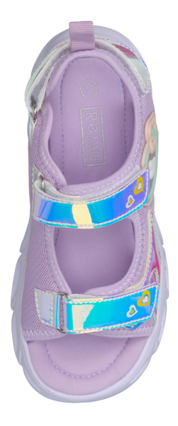 Lasten Remu Sunny sandaalien pohjissa olevat valot vilkkuvat hauskasti kävellessä. Sandaaleissa on kauniit sydänkoristeet ja metallinhohtoiset yksityiskohdat. Vuori ja sisäpohja ovat miellyttävän tuntuista tekstiiliä. Takana oleva tarra sekä päällä olevat kaksi tarraa helpottavat sandaalien pukemista ja säätämistä.