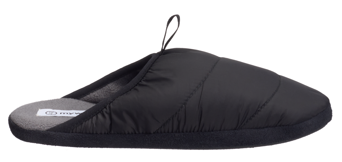 Mukavat miesten kotitossut, joissa pehmeä fleecevuori tuo lämpöä ja termoplastinen kumipohja varmistaa hyvän pidon ja kestävyyden sisäkäytössä. Kankainen päällinen tekee tossuista hengittävät ja miellyttävät jalassa. Täydellinen valinta rentoon oleiluun kotona.