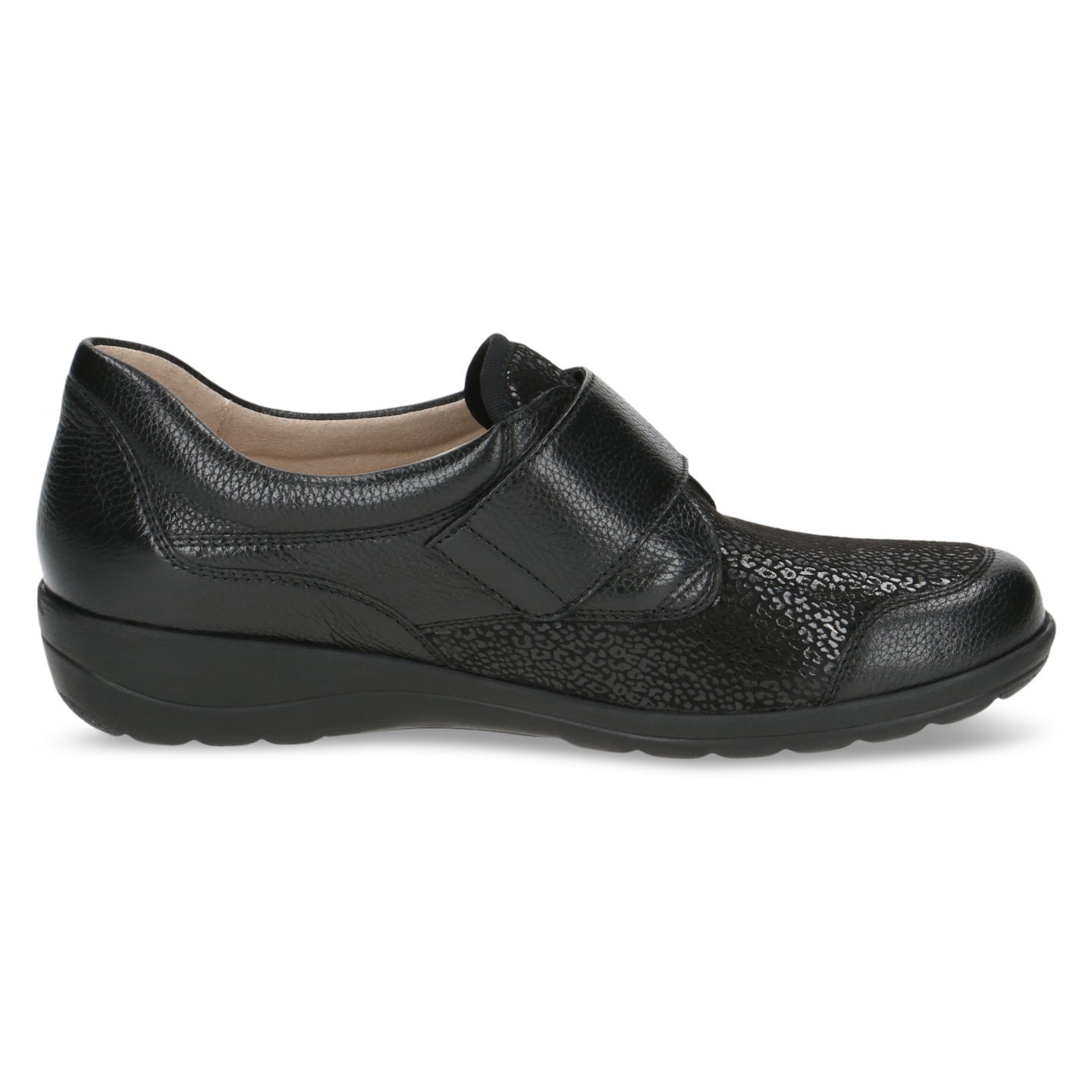 Nahkainen kävelykenkä, jossa tilava H-lesti ja venyvä stretch päällinen. Irroitettava hengittävä airmotion pohjallinen. Mukavuus taattu!